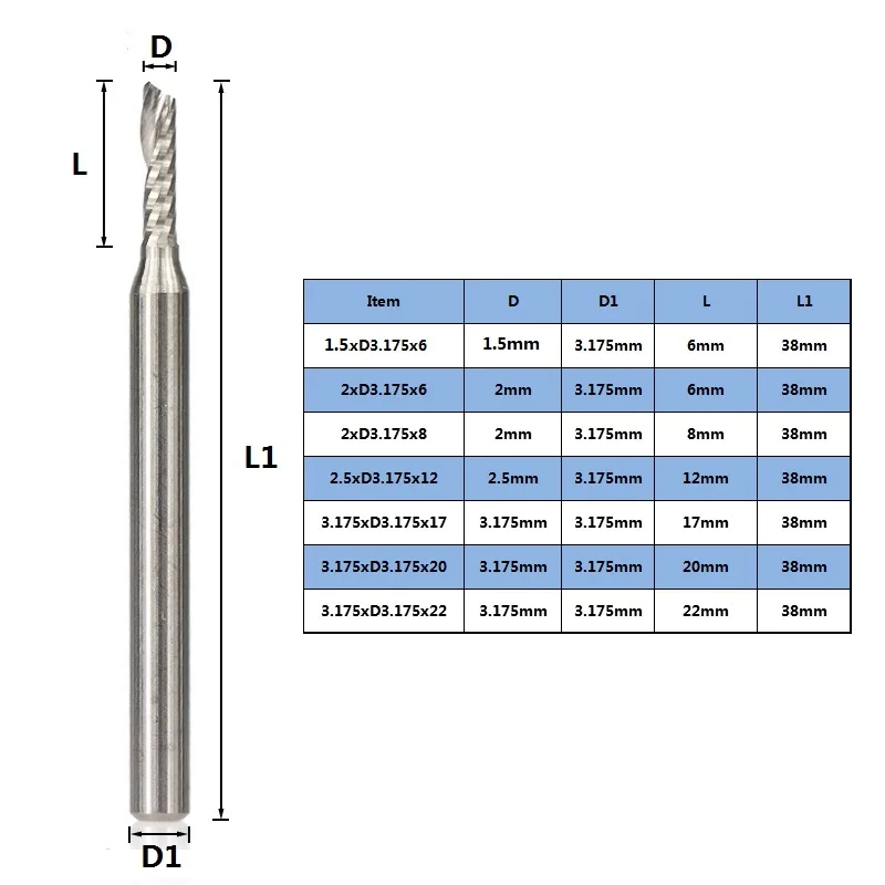 Спиральные фрезы XCAN с одной канавкой, хвостовик 2x8 мм, 3,175 дюйма, для резки деревапластика, Фрезы с ЧПУ, 1 канавка, 10 шт.