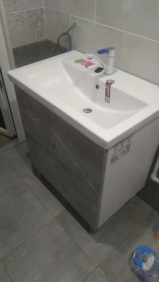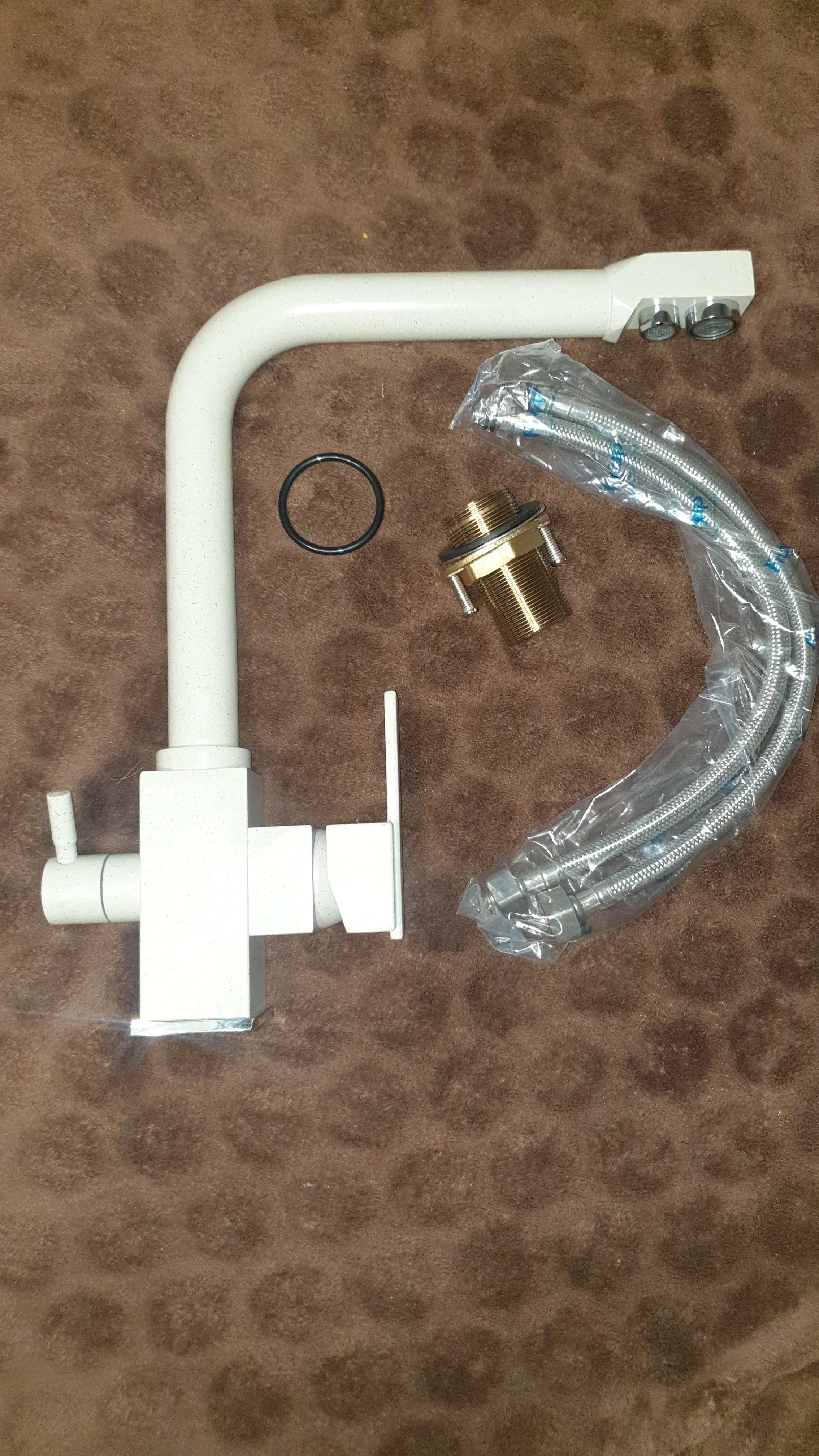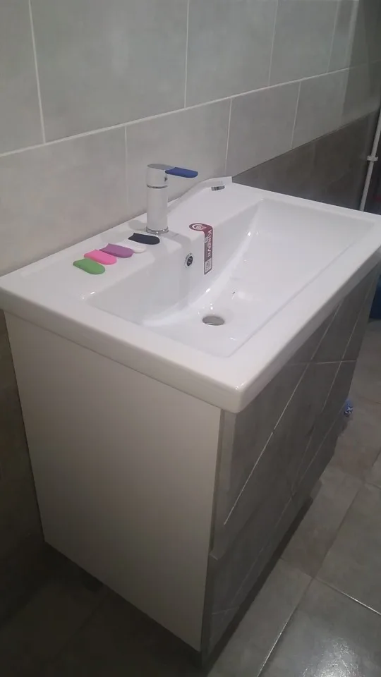 быстрая доставка, немного повозился с шайбой крепления, т.к. отверстие в раковине почти того же диаметра. выглядит хорошо, немного неудобно, что расстояние между краном и ручкой небольшое, но не критично.