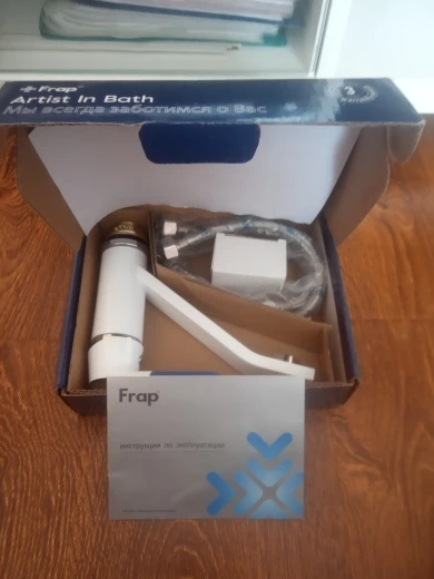 frap как всегда на высоте. отличный кран. Покупали в кухню, пользуемся пол года, всё отлично. теперь приобрели для ванной комнаты. посылка была довольно маленького размера. кран сделан качественно. подводящие шланги 30 см. если нужно длиннее, сразу покупайте. упаковано всё добротно. вместе с краном и набор силиконовых наконечников на ручку. довольно качественные, легко снимаются и одеваются.