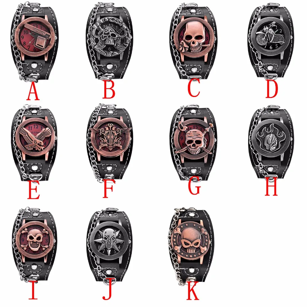 Часы-скелетоны в античном стиле мужские, дизайнерские аналоговые кварцевые модные, в стиле панк, с изображением черепа, с кожаным ремешком
