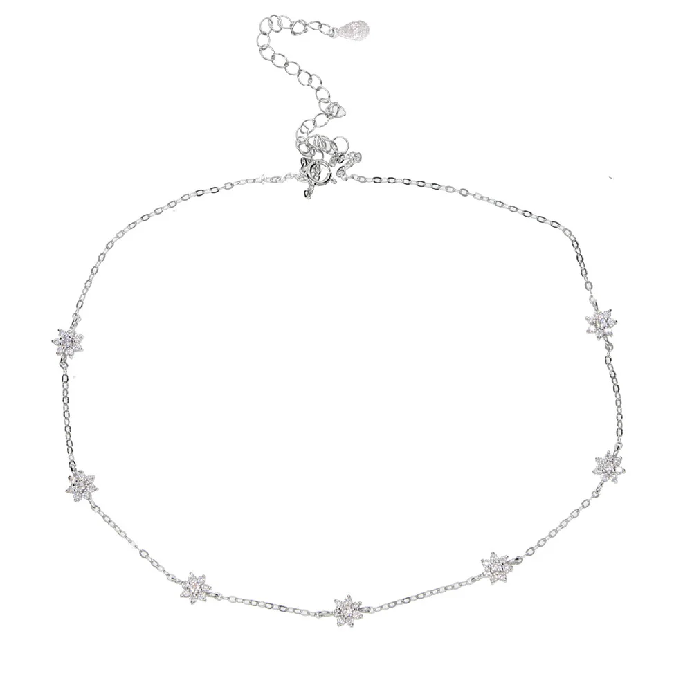 Подвеска Collares, 100% Стерлинговое Серебро 925 пробы, ювелирное изделие, Элегантный Cz цветок, очаровательное звено, чокер, ожерелье для женщин, для девушек, короткий слой