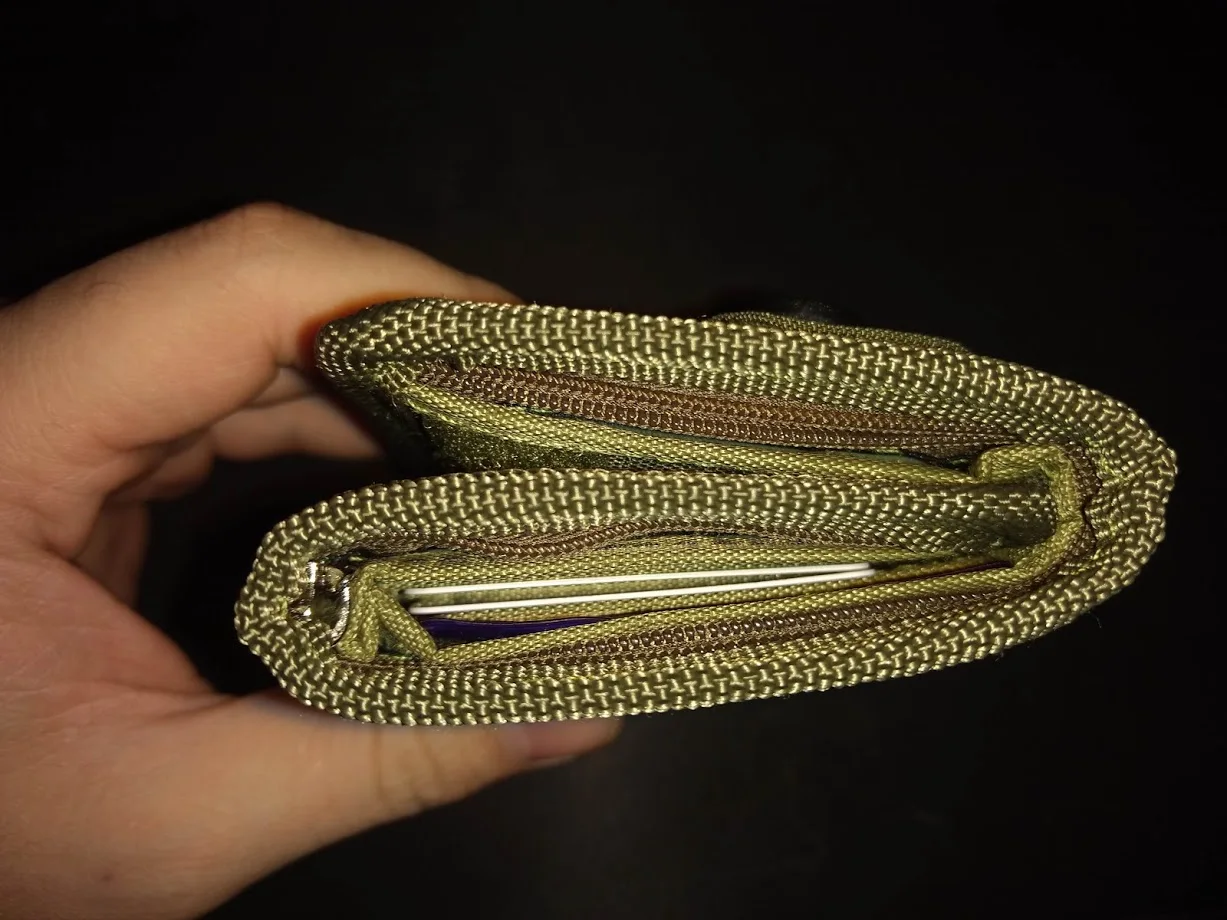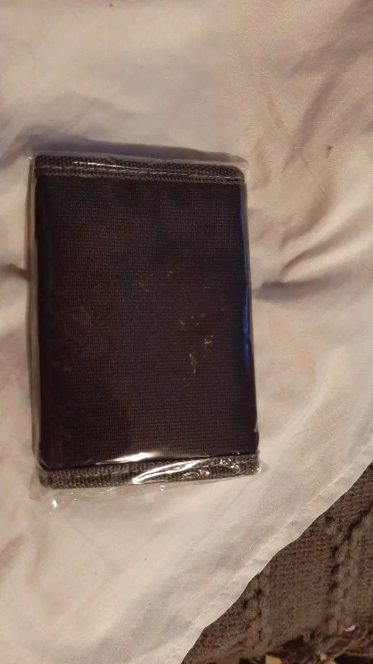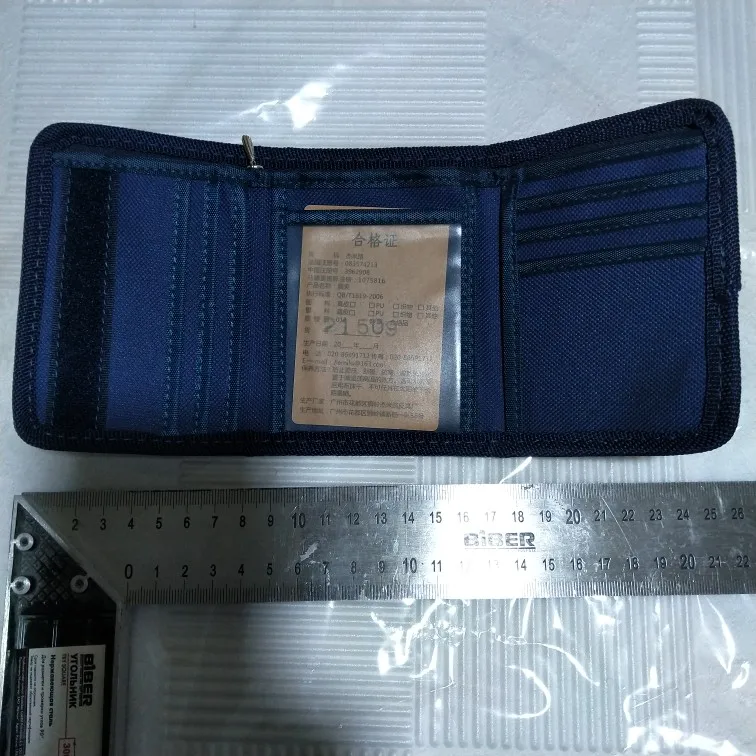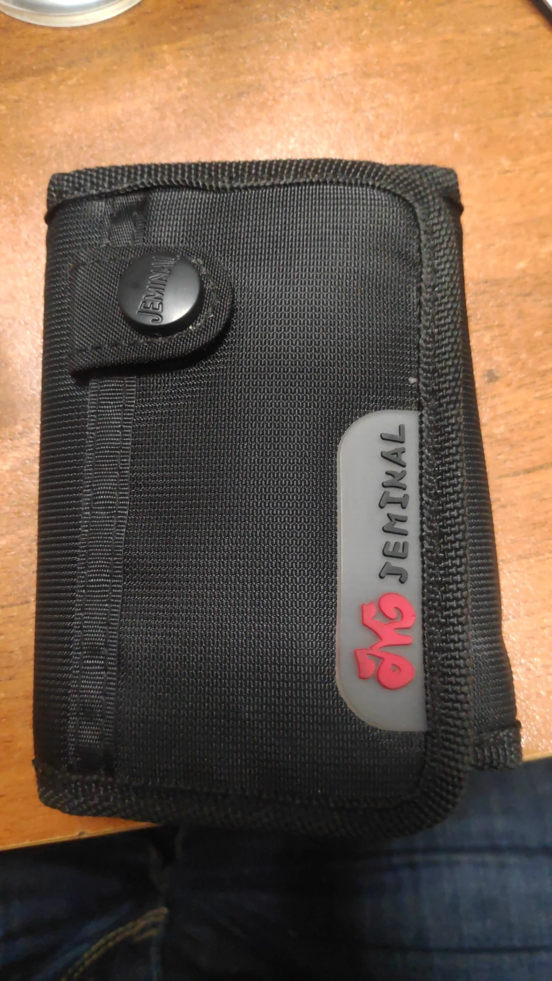 Доставка 4 недели до 42 региона. Когда именно произошла отправка непонятно, потому что первый треккод больше недели висел мертвым, а потом сменился другим номером и тогда только пошла отслеживаемая доставка. Пошито прям как на фотографиях в описании, если вам кажется что где то неровно, то вам не кажется. Некоторые углы действительно кривые. В сложенном состоянии 80x12 мм, толщина 35 мм с 9ю картами и парой купюр. В разложенном 260x12 мм. Липучка оч крепкая. Под наружной стороной, под тканью подложены три подкладки типа картона, с чем то мягким наружу. Кошелек несколько толще, чем хотелось бы.