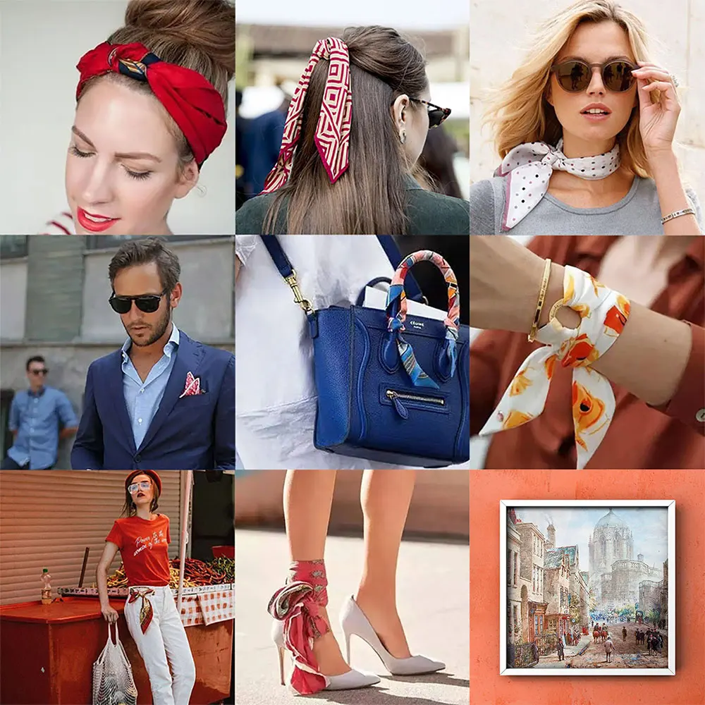 Эта бандана может быть обернута вокруг шеи, запястья или лодыжки для украшения. Также можно использовать в качестве шарфа или шарфа. Между тем, вы можете украсить свою сумочку этим милым шелковым платком. После глажки и размещения в рамке для картин этот хорошо напечатанный маленький квадратный шелковый шарф станет необычным произведением искусства. Это модный подарок для вашей семьи и друзей.