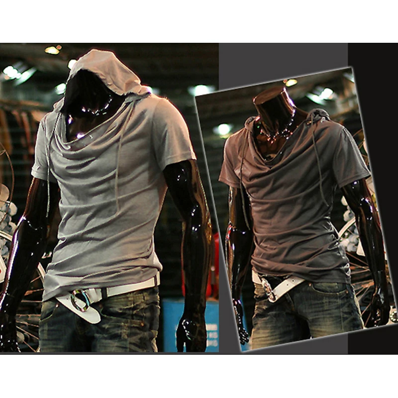 Футболка мужская с круглым вырезом, модная тенниска с капюшоном, уличная одежда в стиле хип-хоп, Однотонная рубашка с короткими рукавами для фитнеса, лето 2021