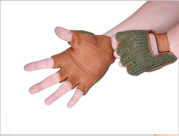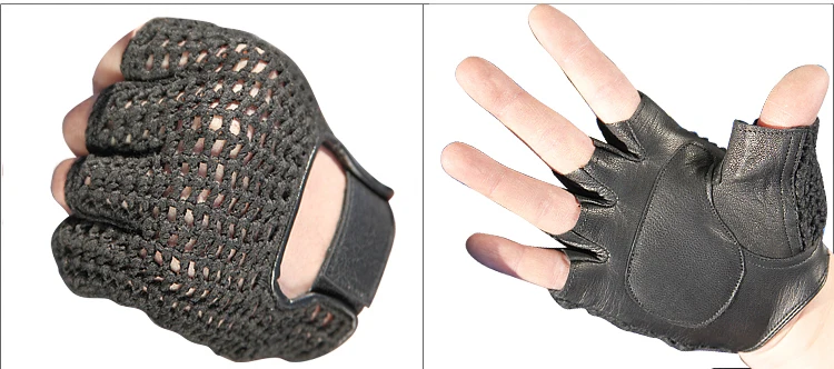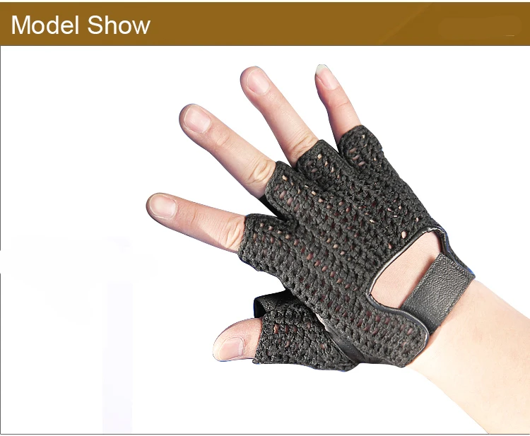 Перчатки мужские из натуральной овечьей кожи, с полупальцами, вязаные, дышащие, для вождения, TB06