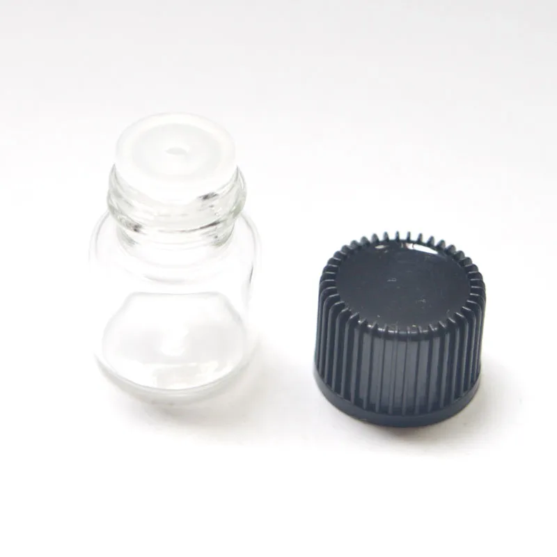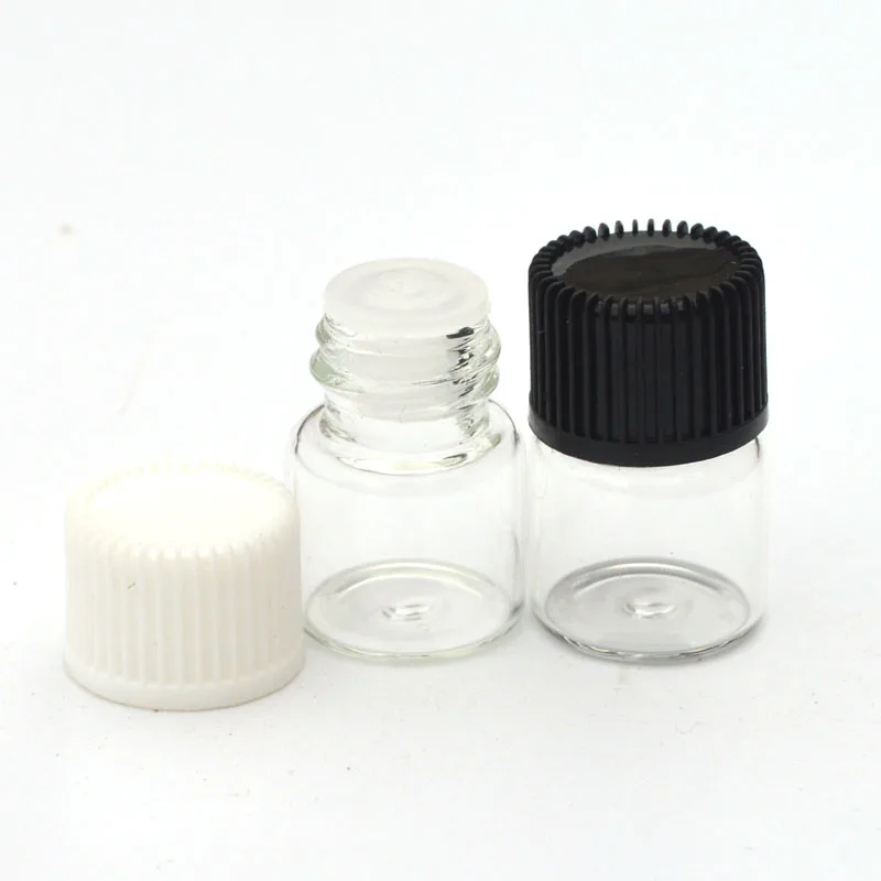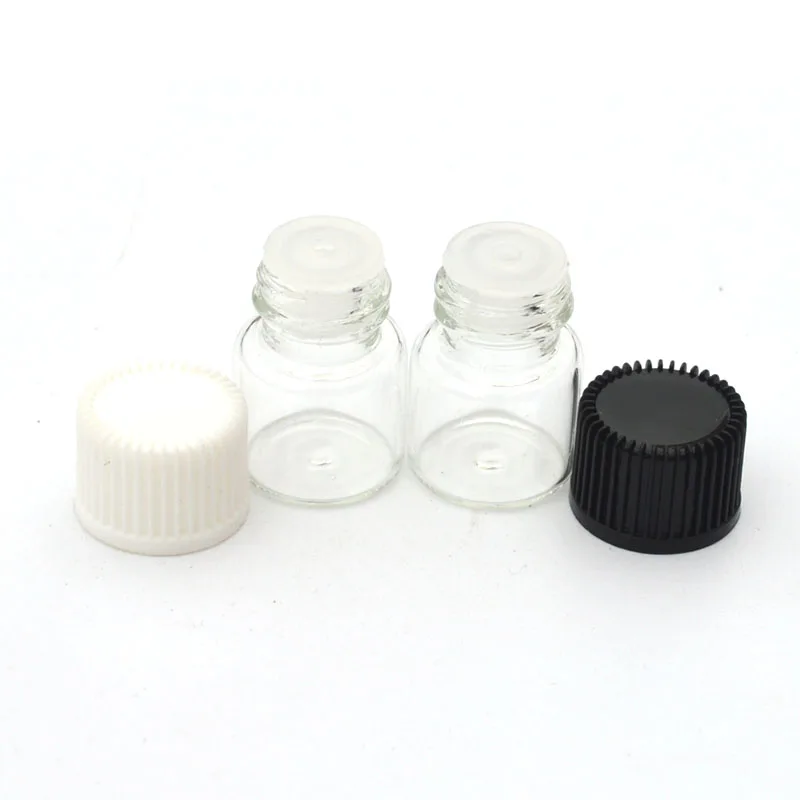 Маленькая прозрачная стеклянная бутылка, 10 шт., 1 мл, с редуктором с отверстием и крышкой, маленькая бутылка для эфирного масла 14 Dram