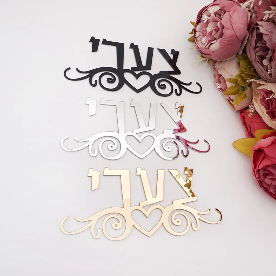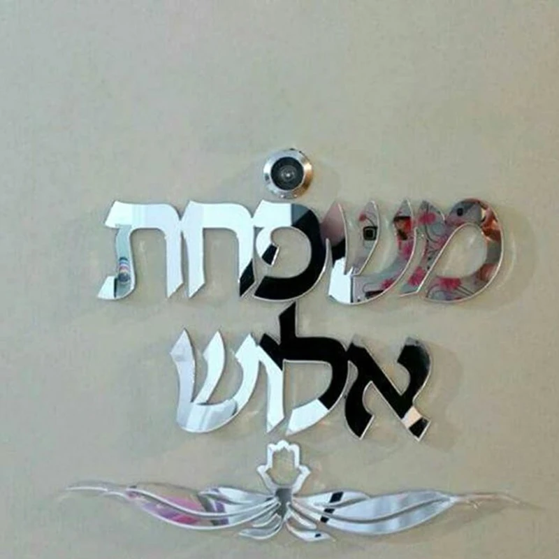 Вывеска имени семьи на иврите с номером дома, знак двери Израиля, индивидуальная акриловая Зеркальная Наклейка на стену, модные подарки