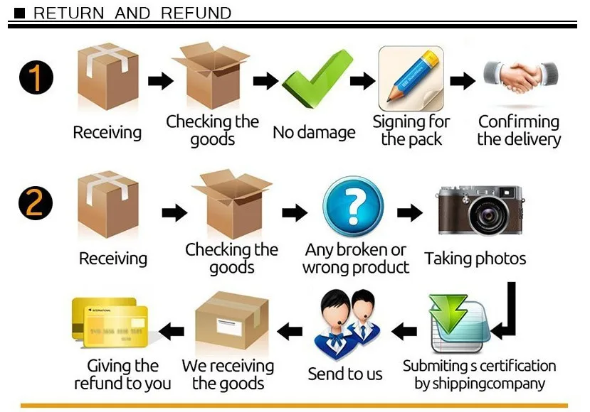 Мы делаем все возможное для наших клиентов. Мы предоставляем качественную продукцию. Если вы обнаружите дефект, пожалуйста, немедленно сообщите нам и опишите дефект, мы приложим все усилия для решения данной проблемы.