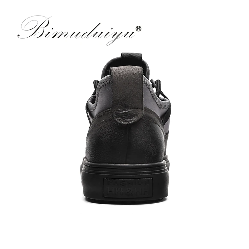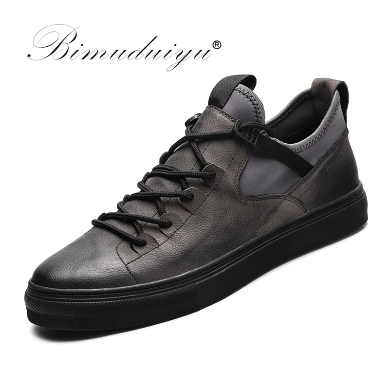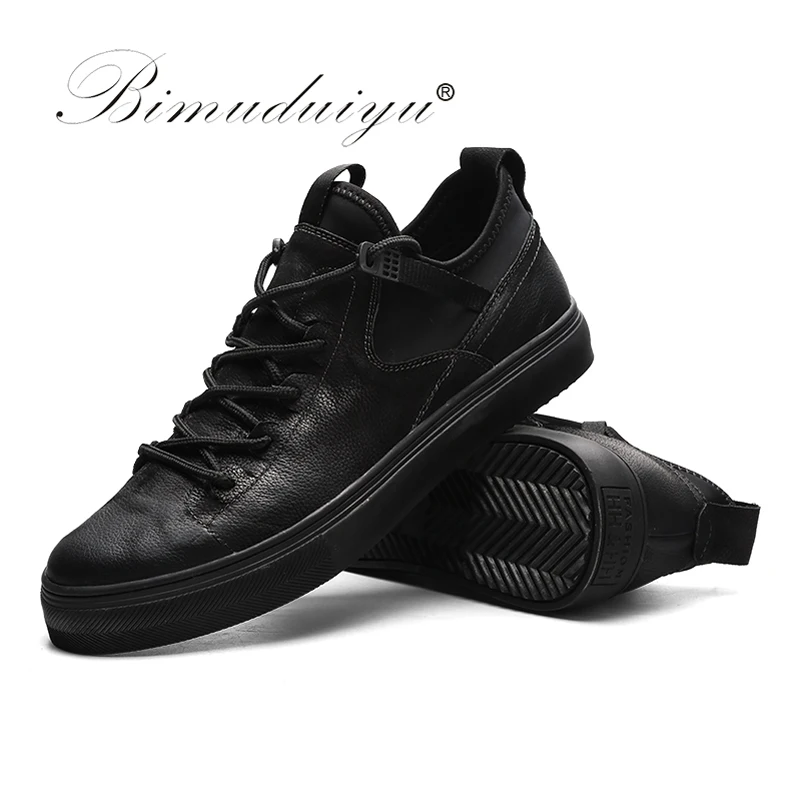 Мужские кроссовки BIMUDUIYU, черные дышащие кроссовки из натуральной кожи на плоской подошве со шнуровкой