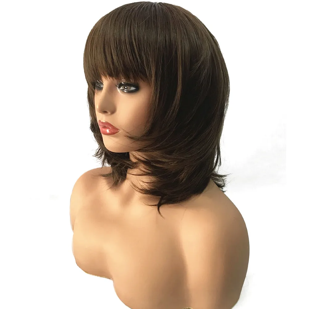 Женский синтетический парик StrongBeauty, прямой темно-коричневыйкаштановый парик средней длины, многослойный парик из натуральных волос