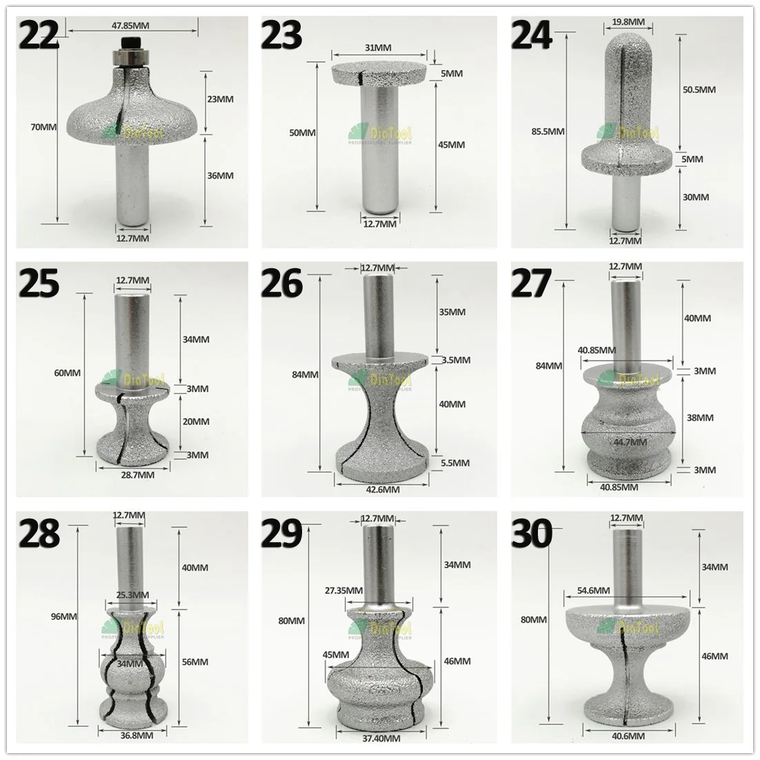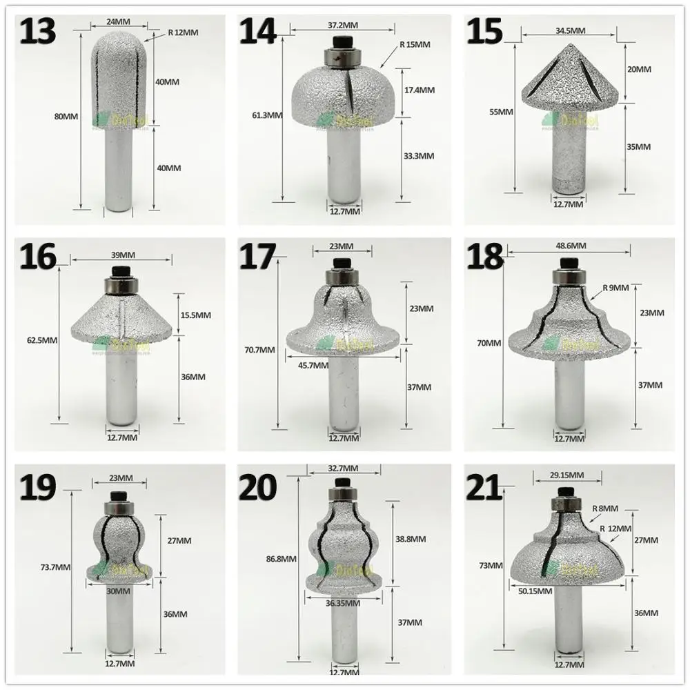 Фреза с алмазным наконечником SHDIATOOL, вакуумные насадки для гранита, мрамора, с хвостовиком 12 дюйма, профилирующая режущая камень, зернистость 60