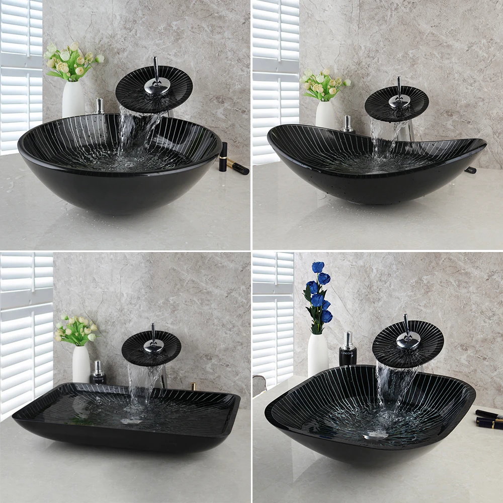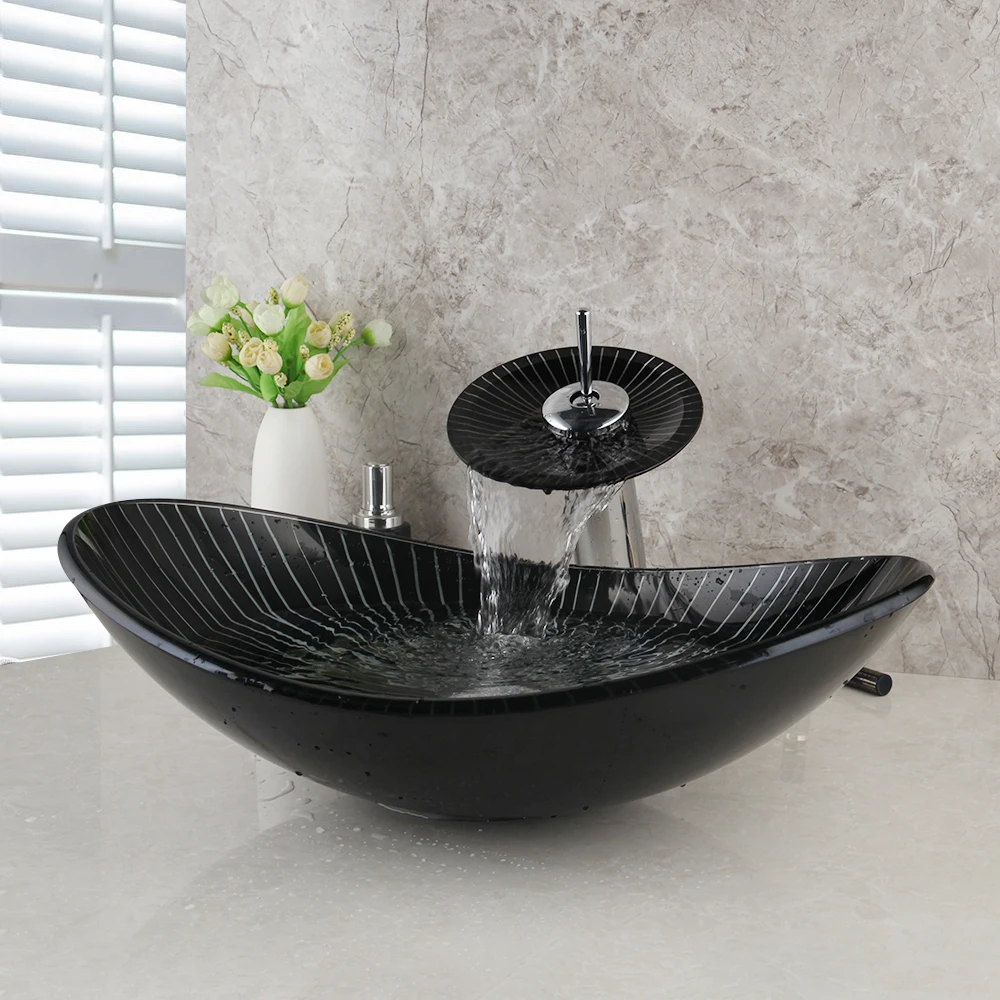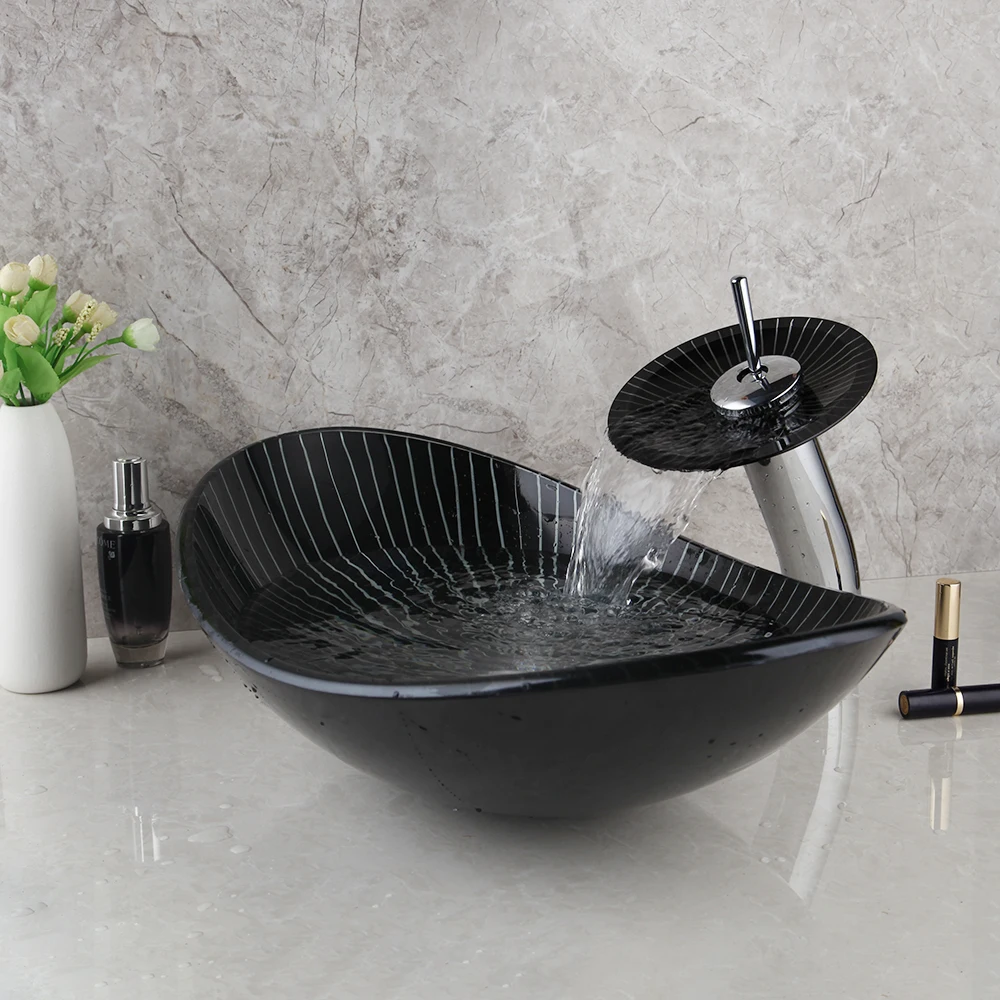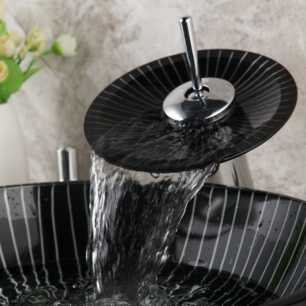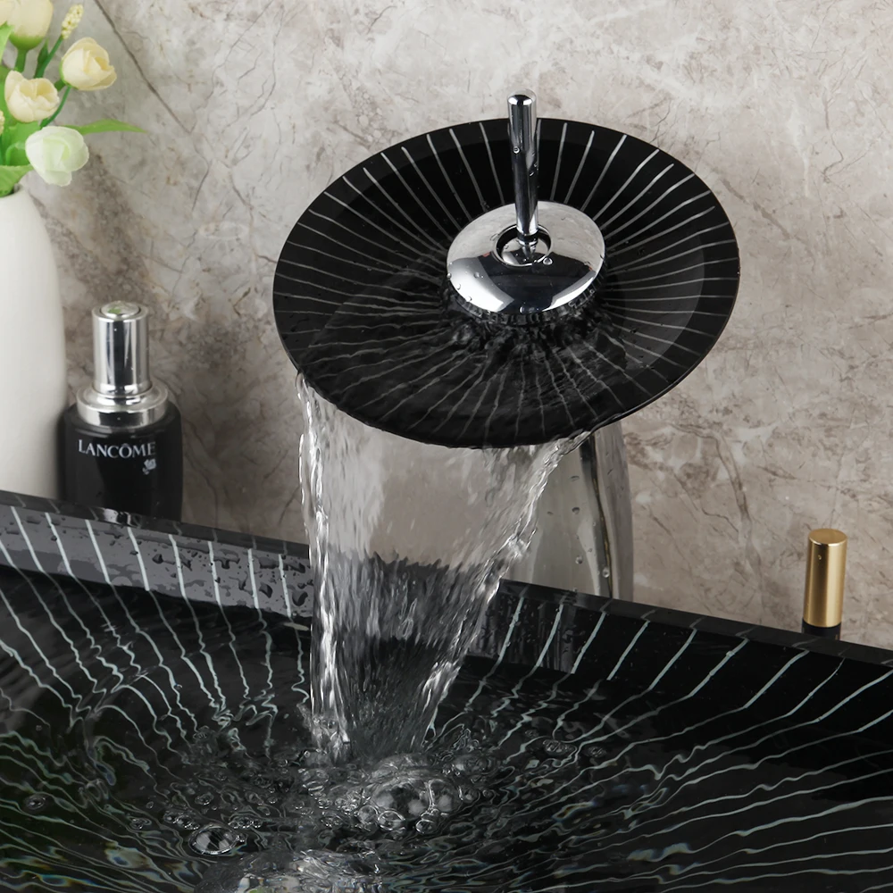 Умывальник для раковины из закаленного стекла, с водопадом