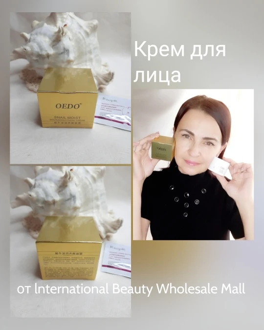 Крем для лица OEDO от lnternational Beauty Wholesale Mall. Крем для лица приехал в Беларусь за месяц, бал в фирменной упаковке, запечатанной в слюду. На упаковке имеется информация о продукте и срок годности. Сам крем находится в баночке объёмом 35 гр. По консистенции крем густой, белого цвета. Этот крем содержит эссенцию улитки и предназначен бороться с мелкими морщинками. Впитывается хорошо и не оставляет жирных следов. После нанесения крема, кожа лица становится мягкой и нежной. Мне крем понравился, крем чудесный! Продавец ещё и пробник положил, мелочь, а приятно. Рекомендую, крем хороший!