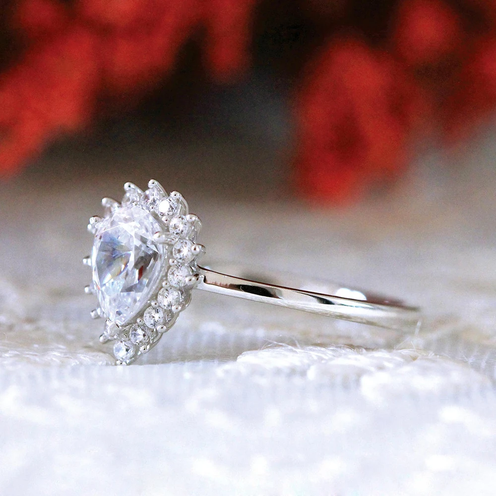Женское моиссанитовое кольцо 14k, белое золото, 10x7 мм, с отделкой из груши, 2,2ct