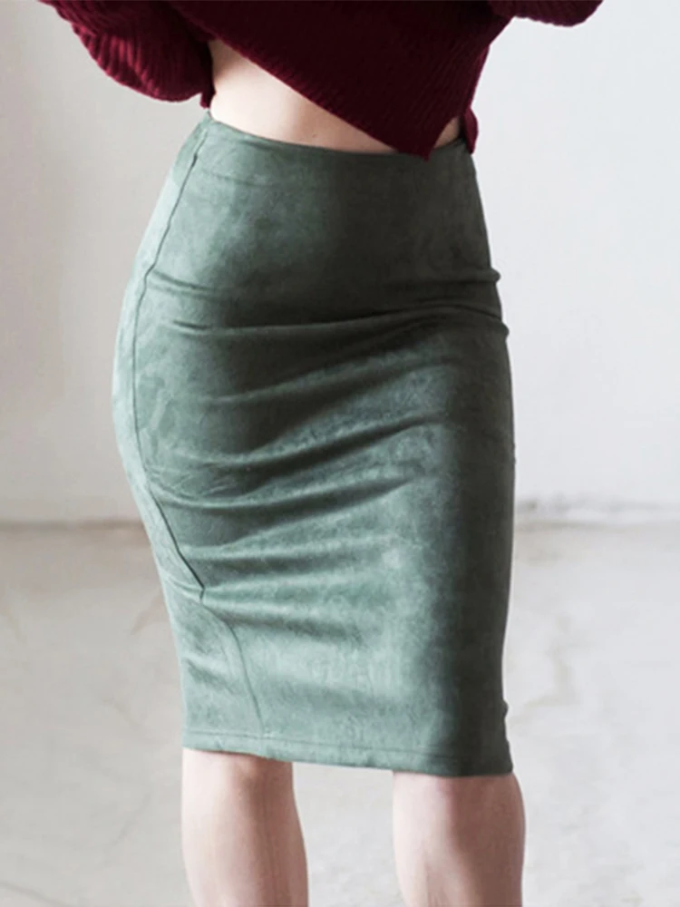 Женская замшевая юбка-карандаш средней длины, с высокой талией