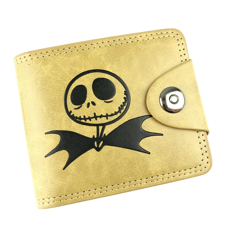 Рождественский Джек череп с рисованным аниме для мужчин и женщин, с короткими рукавами, для мальчиков и девочек, кожа, на застежке, бумажник на кнопке бумажник для денег