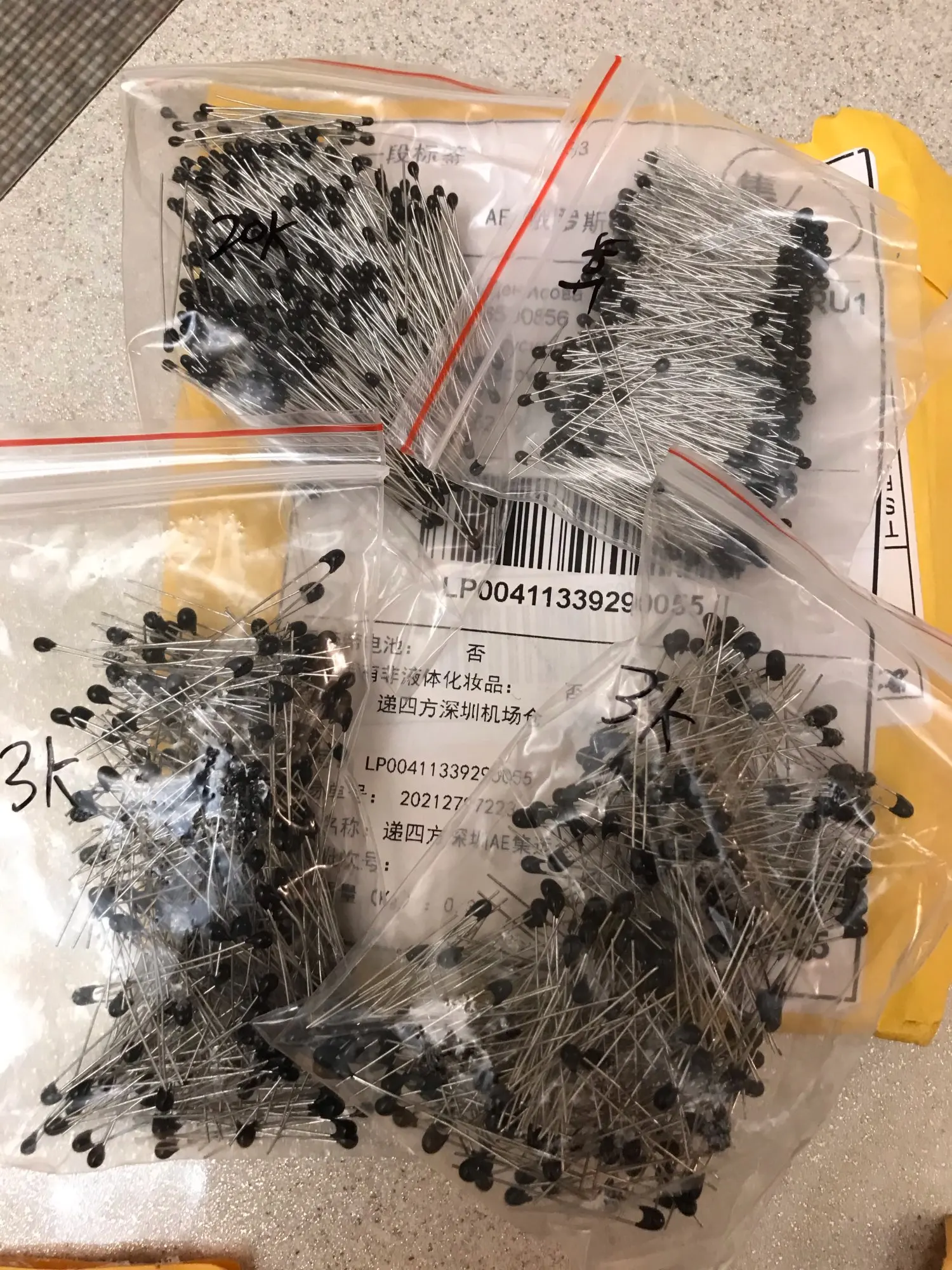 Доставка 28 дней. Термисторы соответствуют описанию. Прислали 18 шт., вместо 20, поэтому 1 звезда минус. Покупкой доволен.