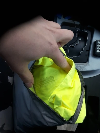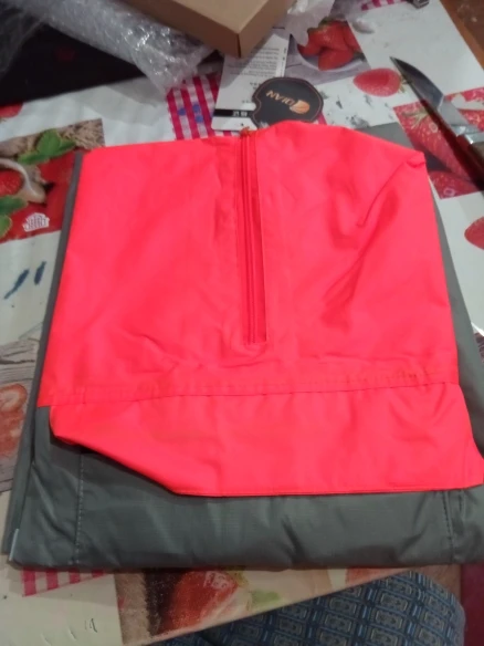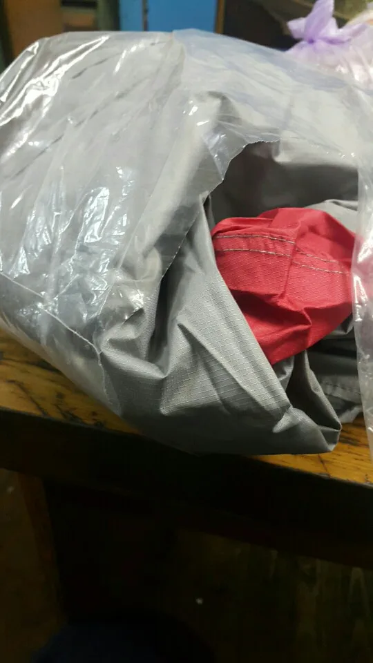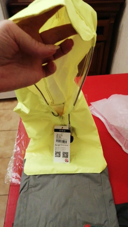 Быстрая доставка. Сначала не понял, почему нет сумки для перевозки. Оказалось, что плащ укладывается в нагрудный карман, вывернутый наизнанку. Классное решение.