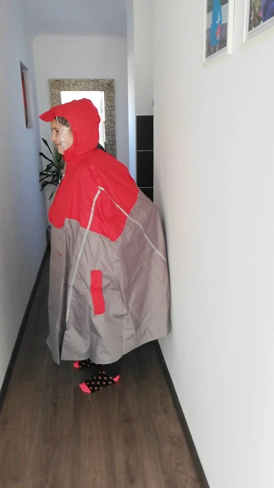 Идеально! Материал накидки плотнее, чем я думал. Я маленький, и накидка хорошо меня оборачивает, у капюшона шлем не проходит, вы должны надеть его сверху. Возможно, было бы нужно подумать об ином для отверстий рук, но в целом, я доволен своей покупкой.