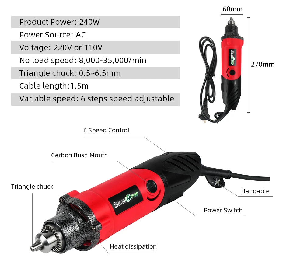 Электрическая мини-дрель, 240 Вт, с 6 позициями регулировки скорости, в стиле Dremel