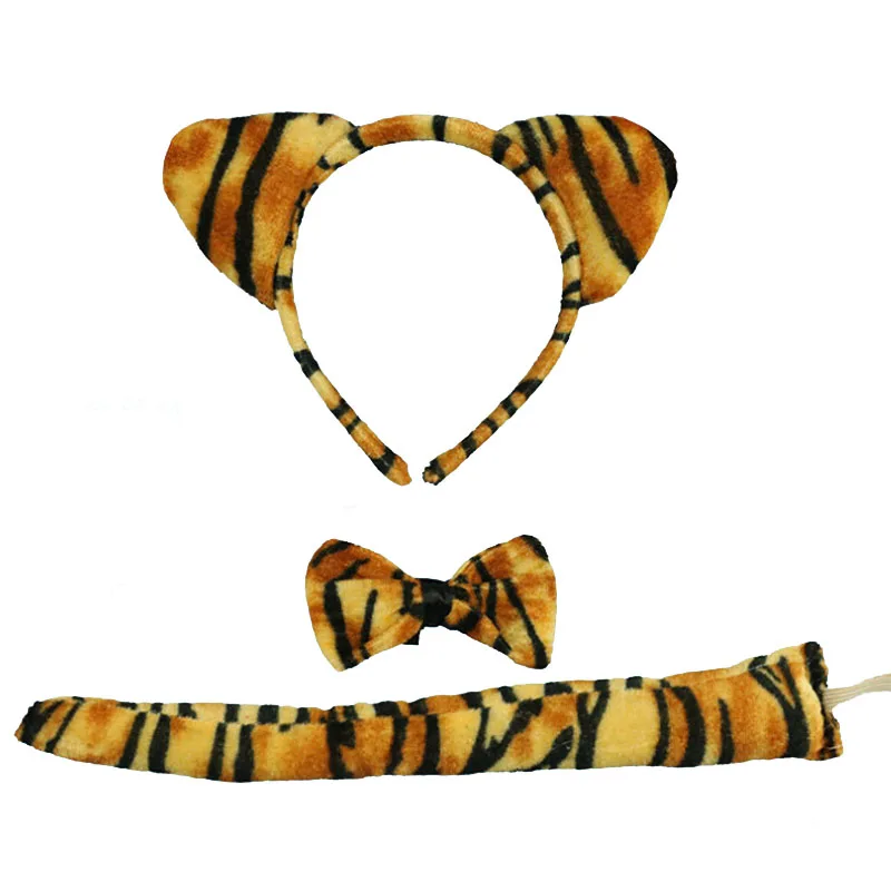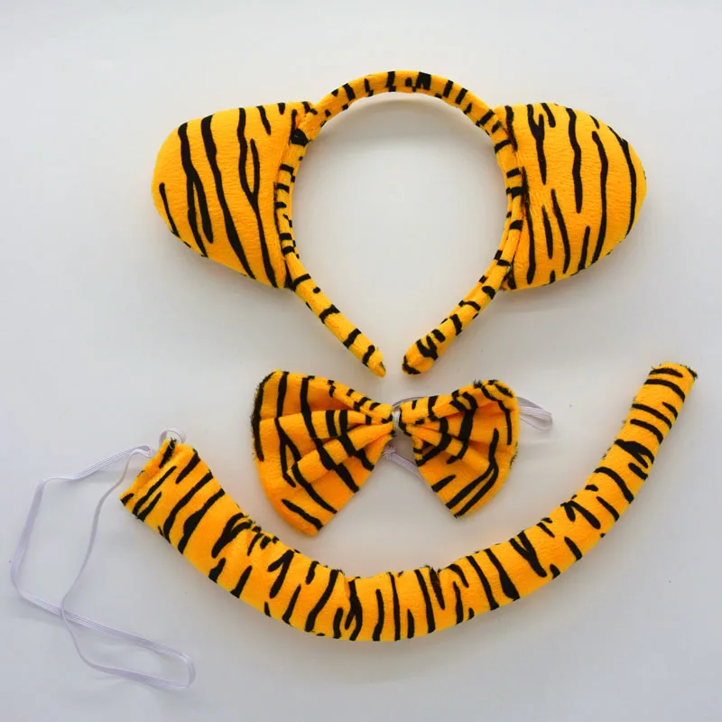 Повязка на голову с ушками животных, галстук-бабочка, хвост, тигр, реквизит для косплея детей и взрослых, сувениры вечерние ринки, подарок, костюм Рамадан, Хэллоуин