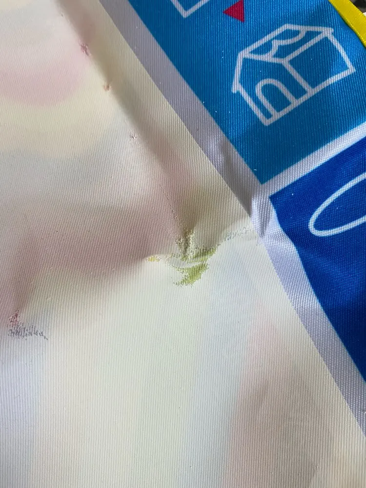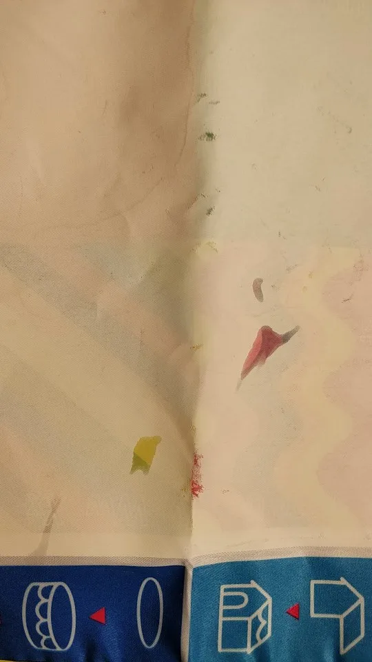 Хорошее качество, несмотря на складку в упаковке, слегка поврежденная белая часть (черные следы на складке)