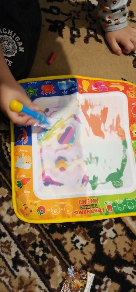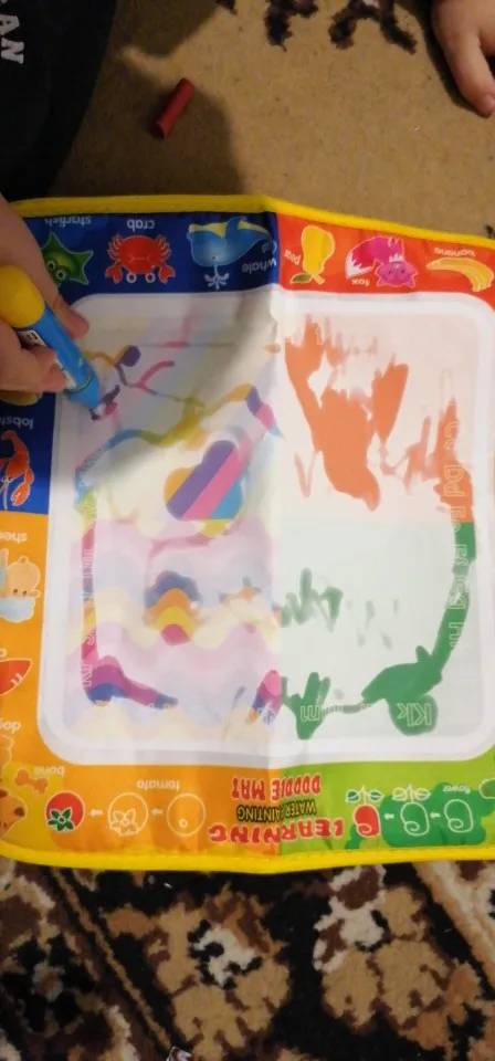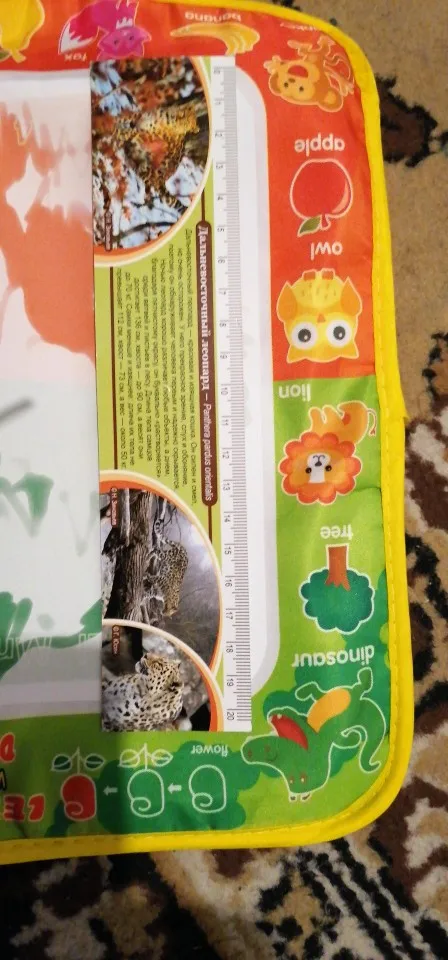 Доставка две недели до моск.обл. Сам коврик хороший, но продавец складывает его пополам, от этого получается залом с потёртостями на середине коврика, где надо рисовать. Хотелось бы, чтоб товар приходил без повреждений.