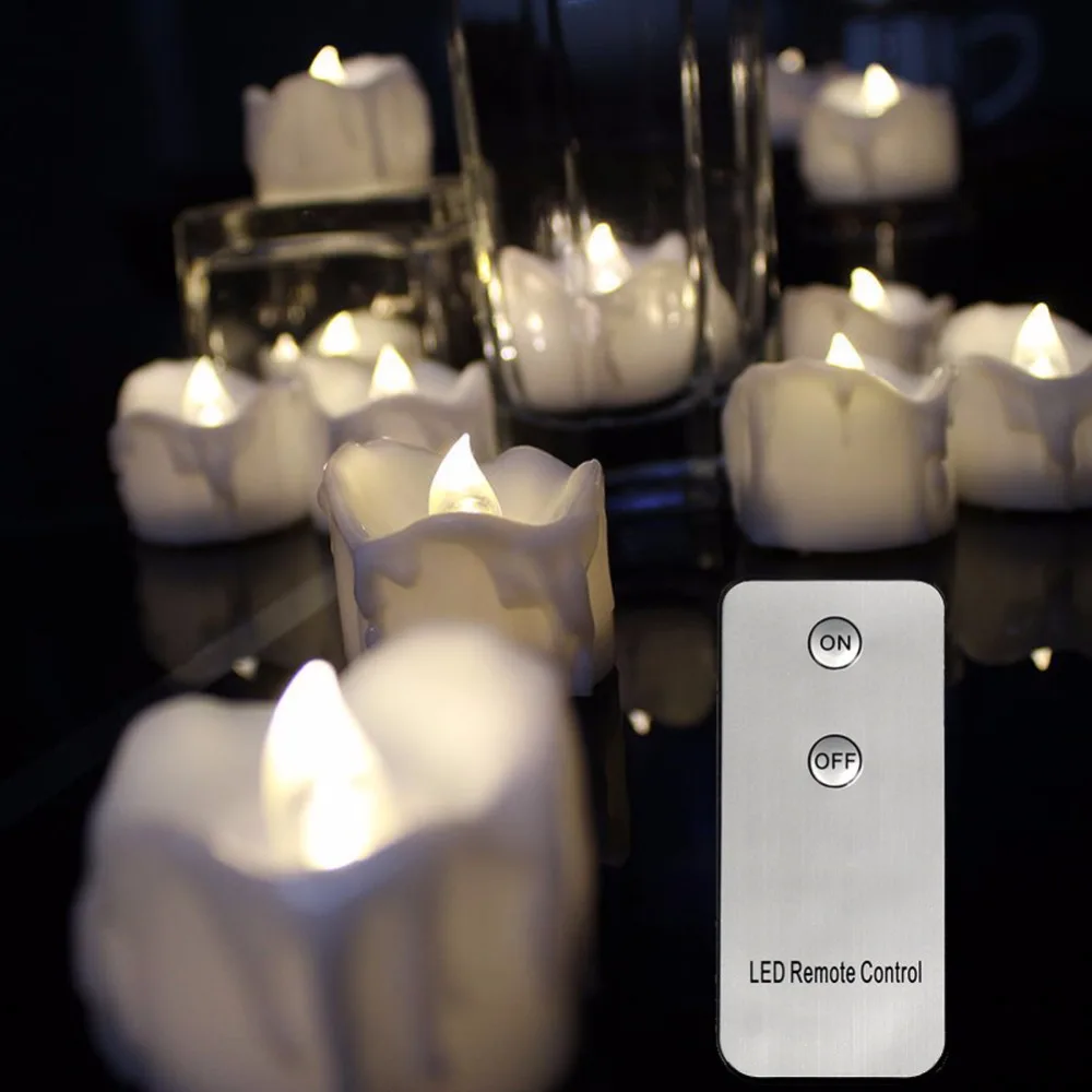 Упаковка из 6 или 12 пластиковых фальшивых свечей с дистанционным управлением и теплым белым миганием, янтарные Свадебные свечи, безпламенные фотосвечи, свечи на день рождения