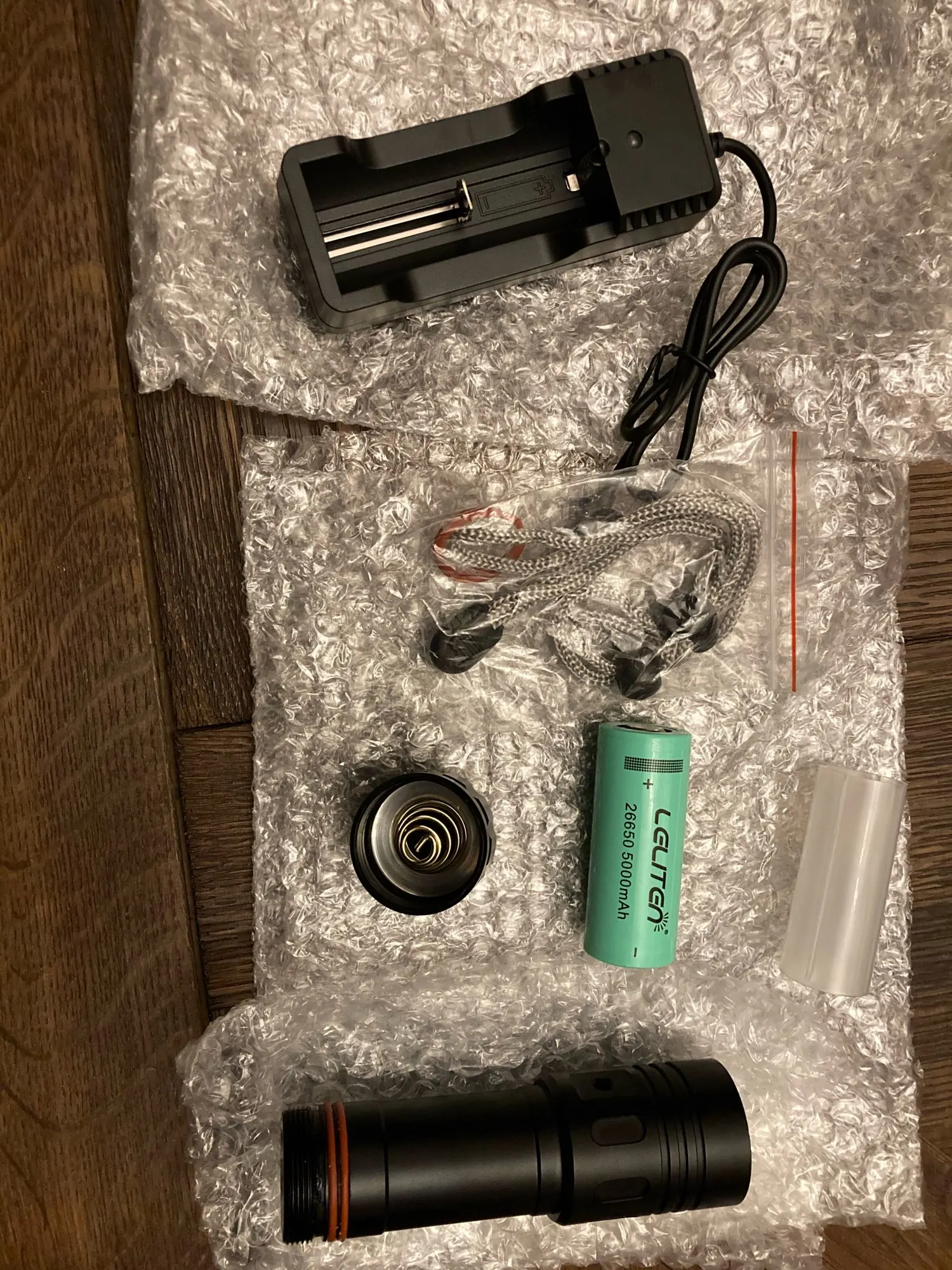 Отличный фонарик для ночных погружений, очень мощный. Идеальная покупка аккумуляторов для использования с ним.