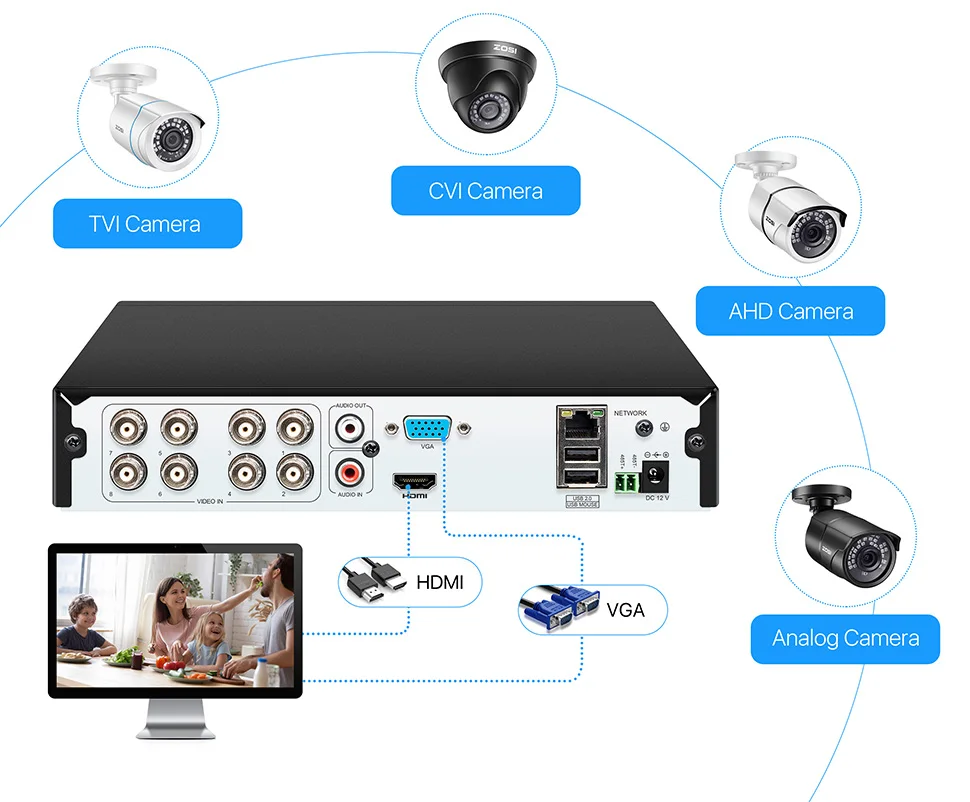 Система видеонаблюдения ZOSI, 1080P, 8 каналов, AHD, CVI, TVI, CVBS, DVR, 1920*1080, 2 МП, гибридная камера видеонаблюдения