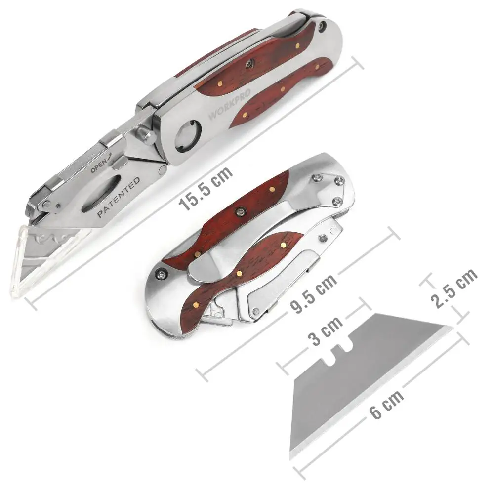 Складной нож WORKPRO, многофункциональный резец с деревянной ручкой