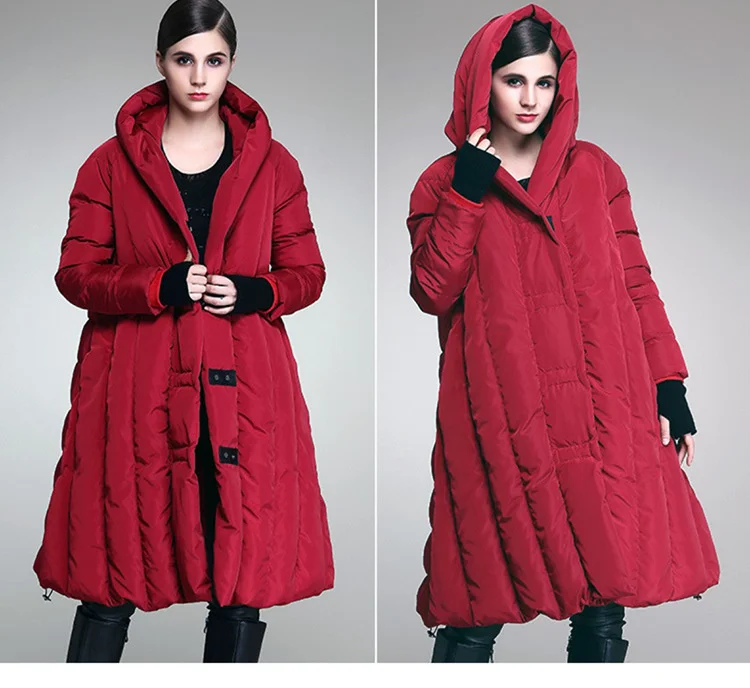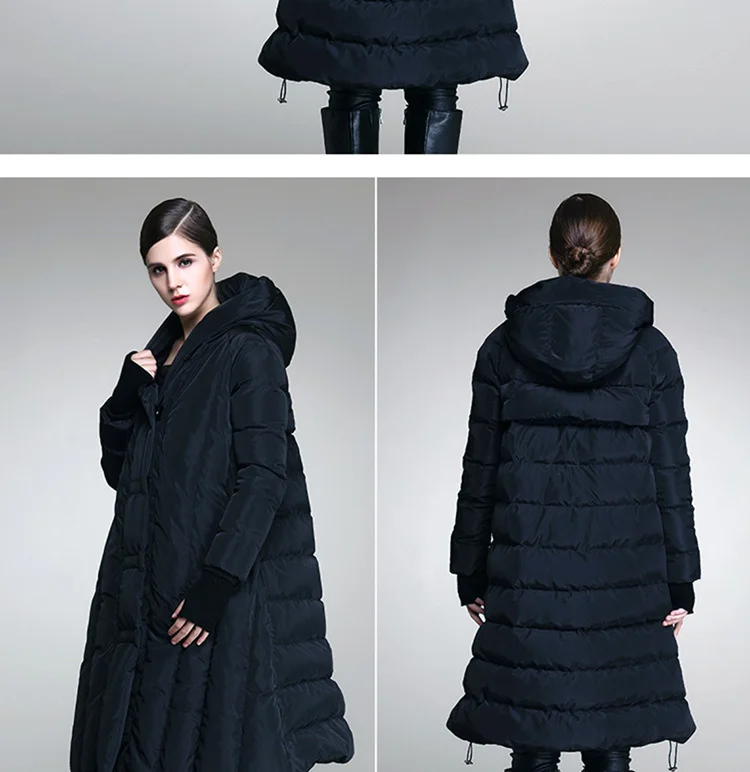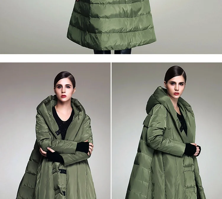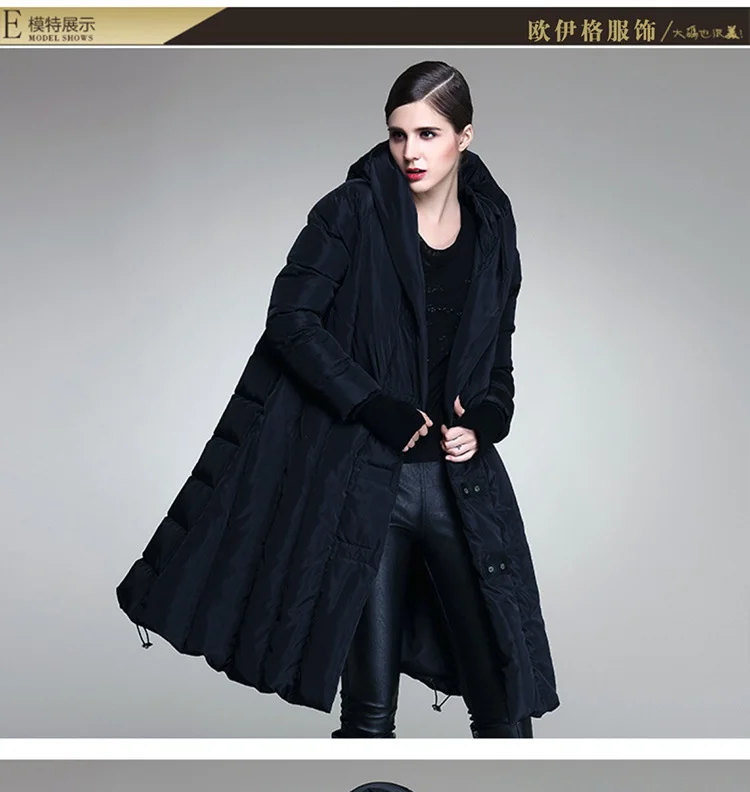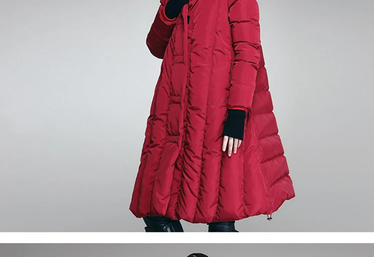Зимний теплый пуховик с капюшоном, женский длинный пуховик длиной выше колена, толстый свободный пуховик с капюшоном, большая женская пуховая куртка 0155