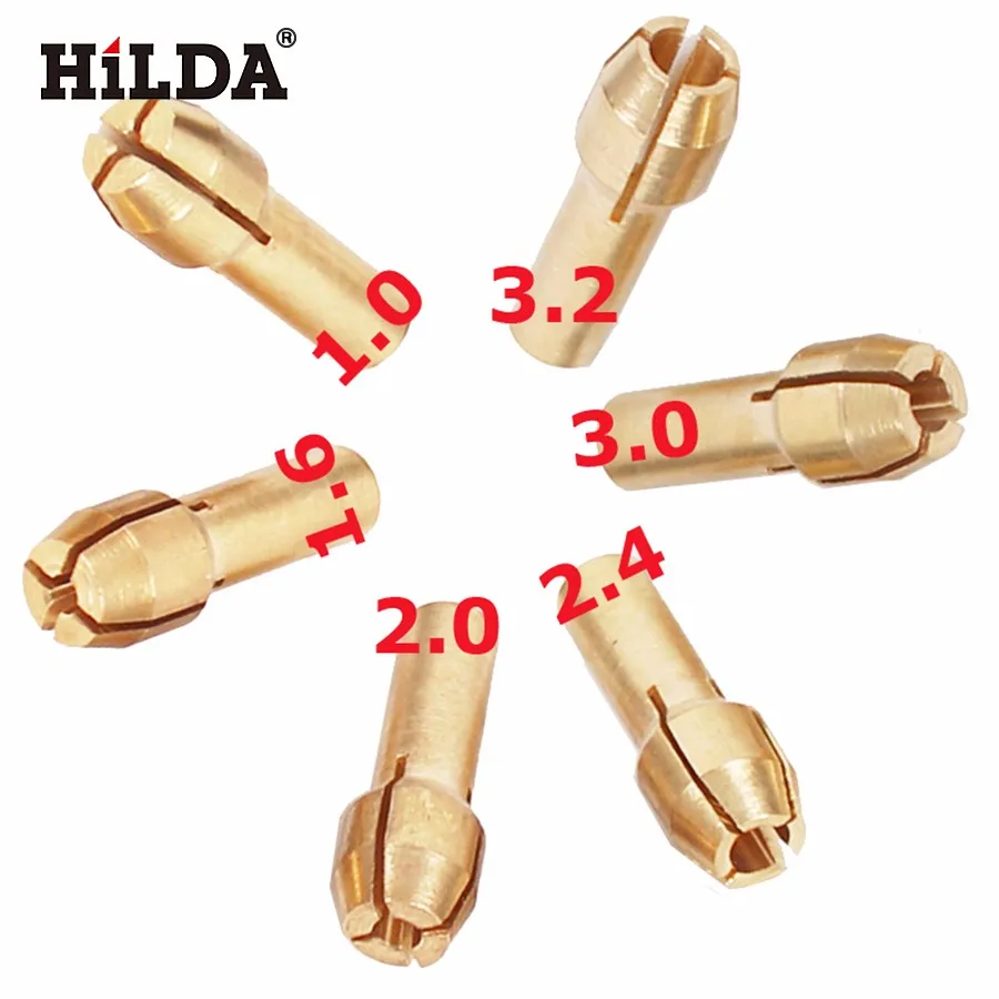 HILDA 6 шт., мини-дрель, латунный патрон для вращающегося инструмента Dremel, включая 1,01,62,02,43,03,2 мм