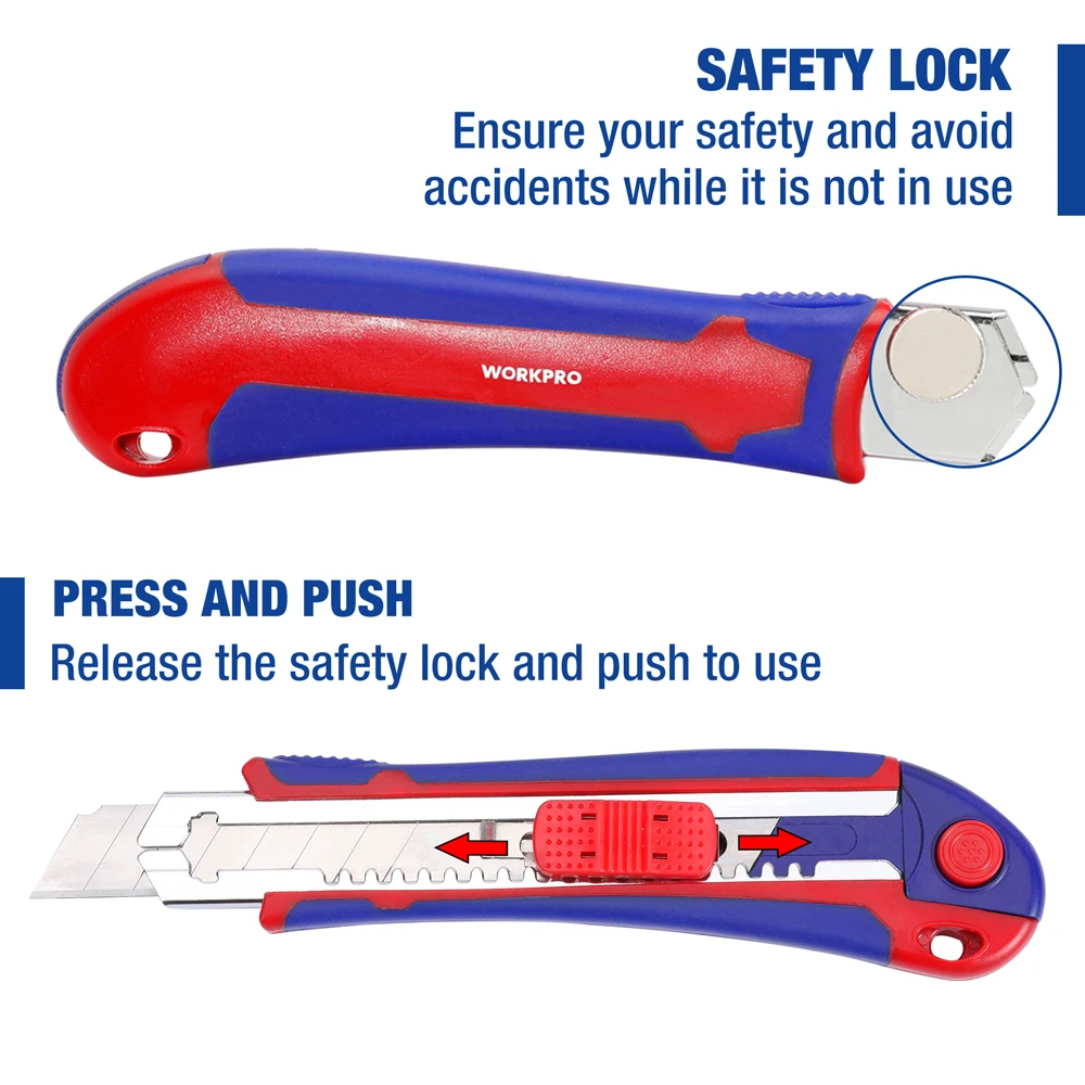 Портативный пластиковый защелкивающийся нож WORKPRO с лезвием SK5 5 шт. 18 мм для дома, рукоделие, резак
