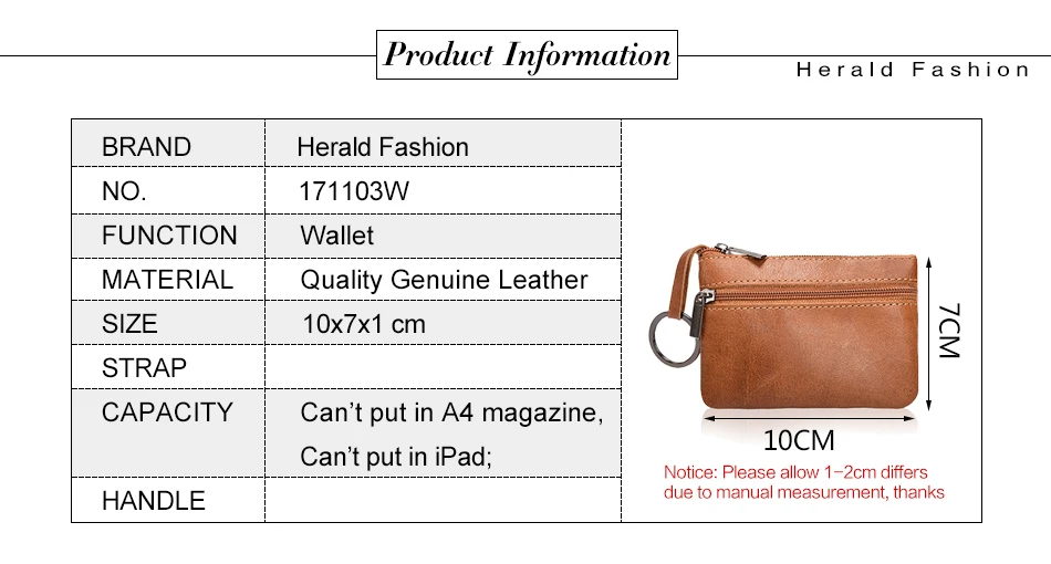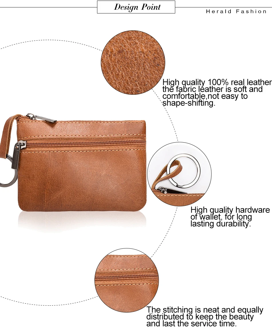 Herald Модный маленький мини-кошелек из натуральной кожи, кошелек для мелочи, Женский кошелек для ключей, сумка для монет, чехол, мини-кошелек на молнии