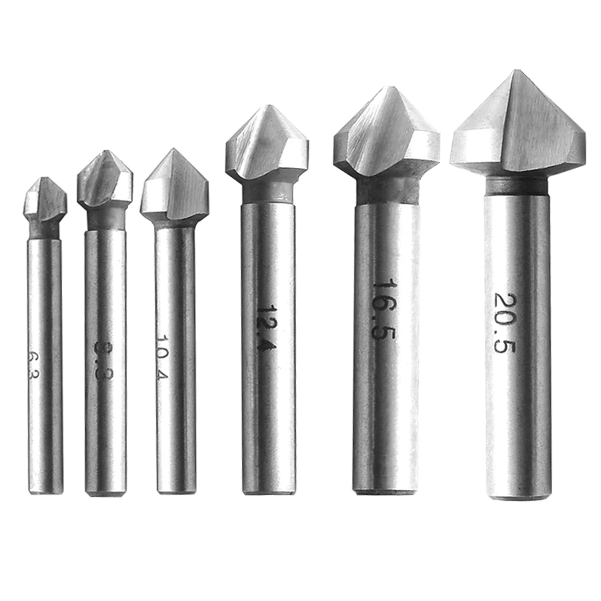 6 шт., сверло HSS для зенковки, 90 градусов, круглая ручка, дерево, сталь, алюминий, фаски, резак, электроинструменты 6,3-20,5 мм