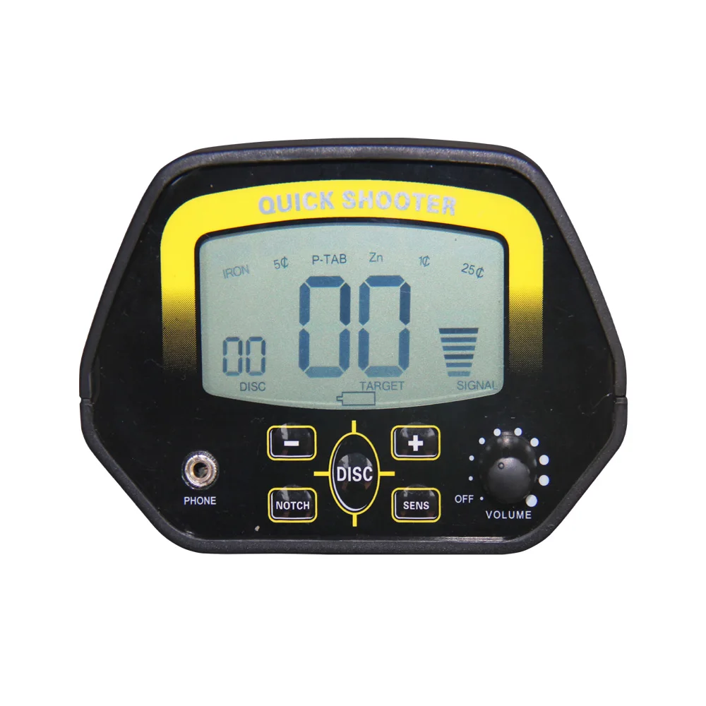 ЖК-дисплей-Показывает возможный тип металла со стрелкой, глубину цели, диапазон дисковых/зазубренных, уровень SENS и состояние батареи. Он также имеет цифровой дисплей для диска и TARGRT.