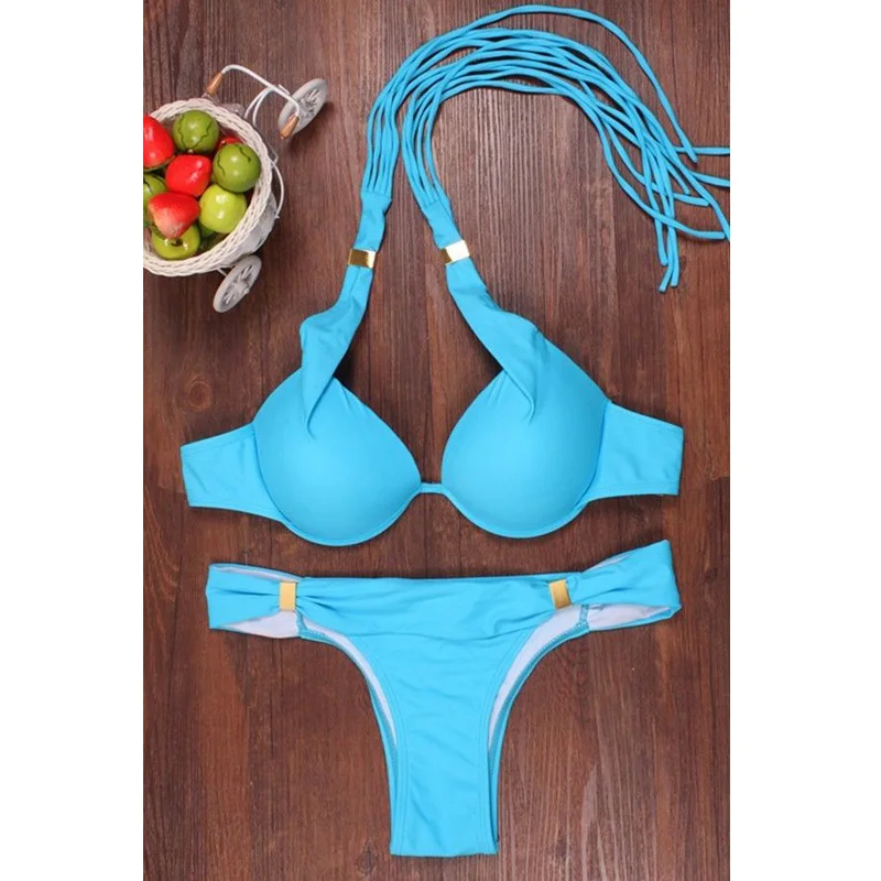 Женский комплект бикини с пуш-апом, купальный костюм бандо с бюстга...