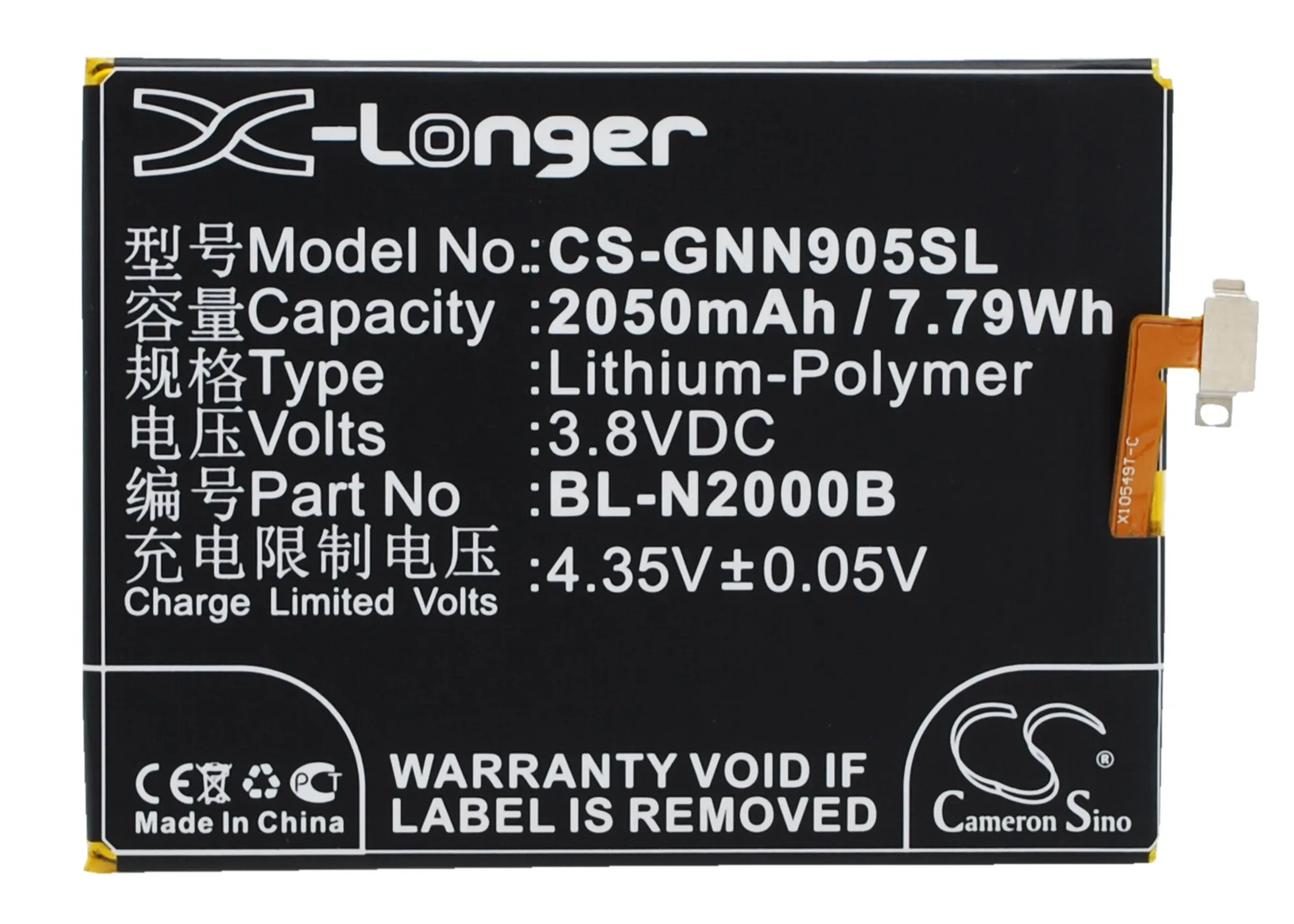 BL-N2000B батареи Cameron Sino 2050mAh для GIONEE ELIFE S5.1, GN9005, для Fly IQ4516, Tornad, для BLU D980L, VIVO AIR