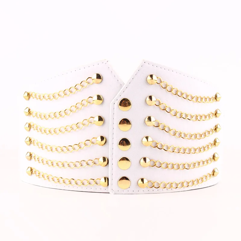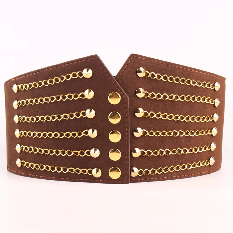 Женский Сверхширокий пояс из ПУ кожи, с металлической цепочкой и заклепками, эластичный пояс для платья с высокой талией