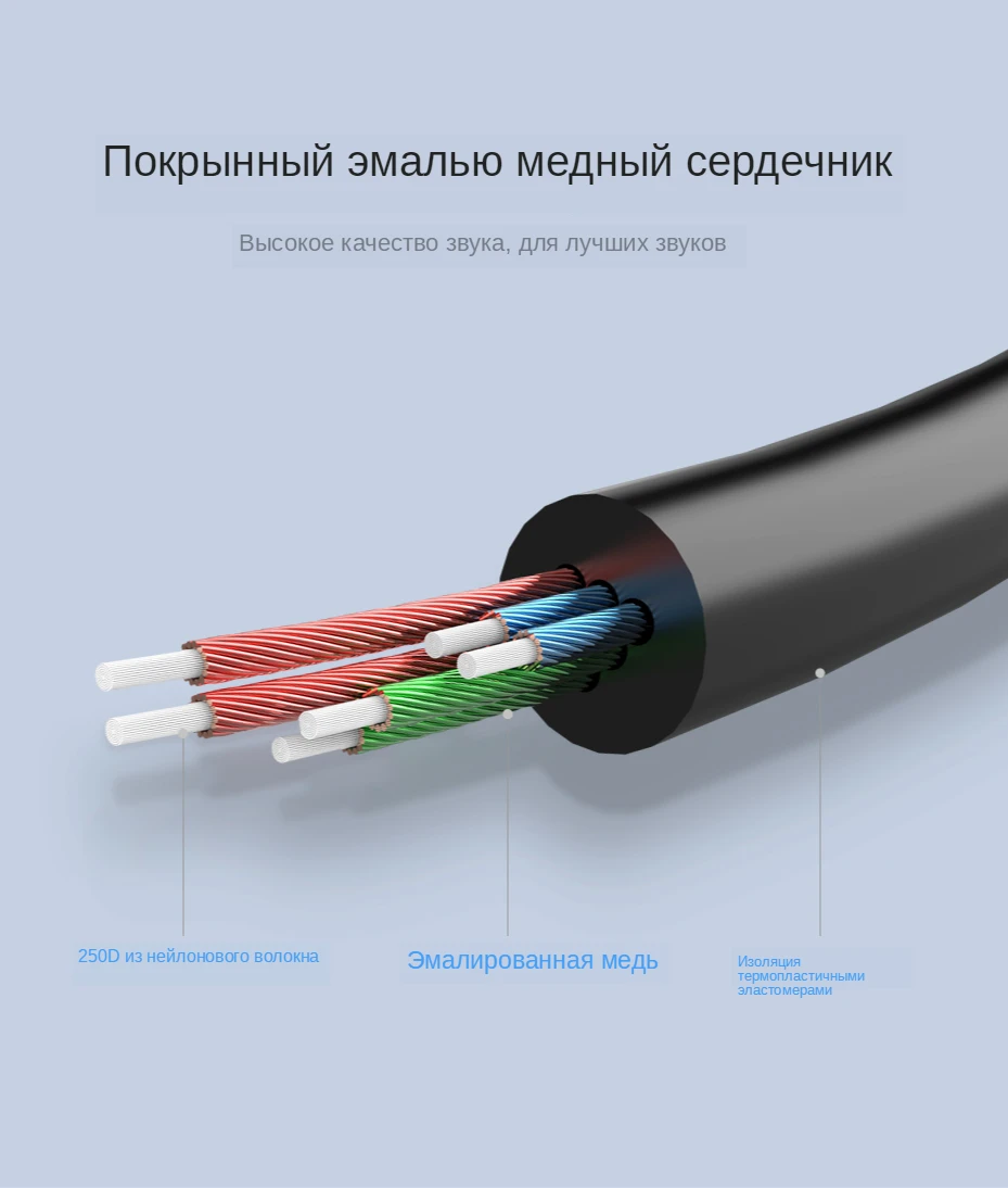 Качество хорошее, не тонкий провод. Штекер входит четко и не выпадает. Звук не прерывается.