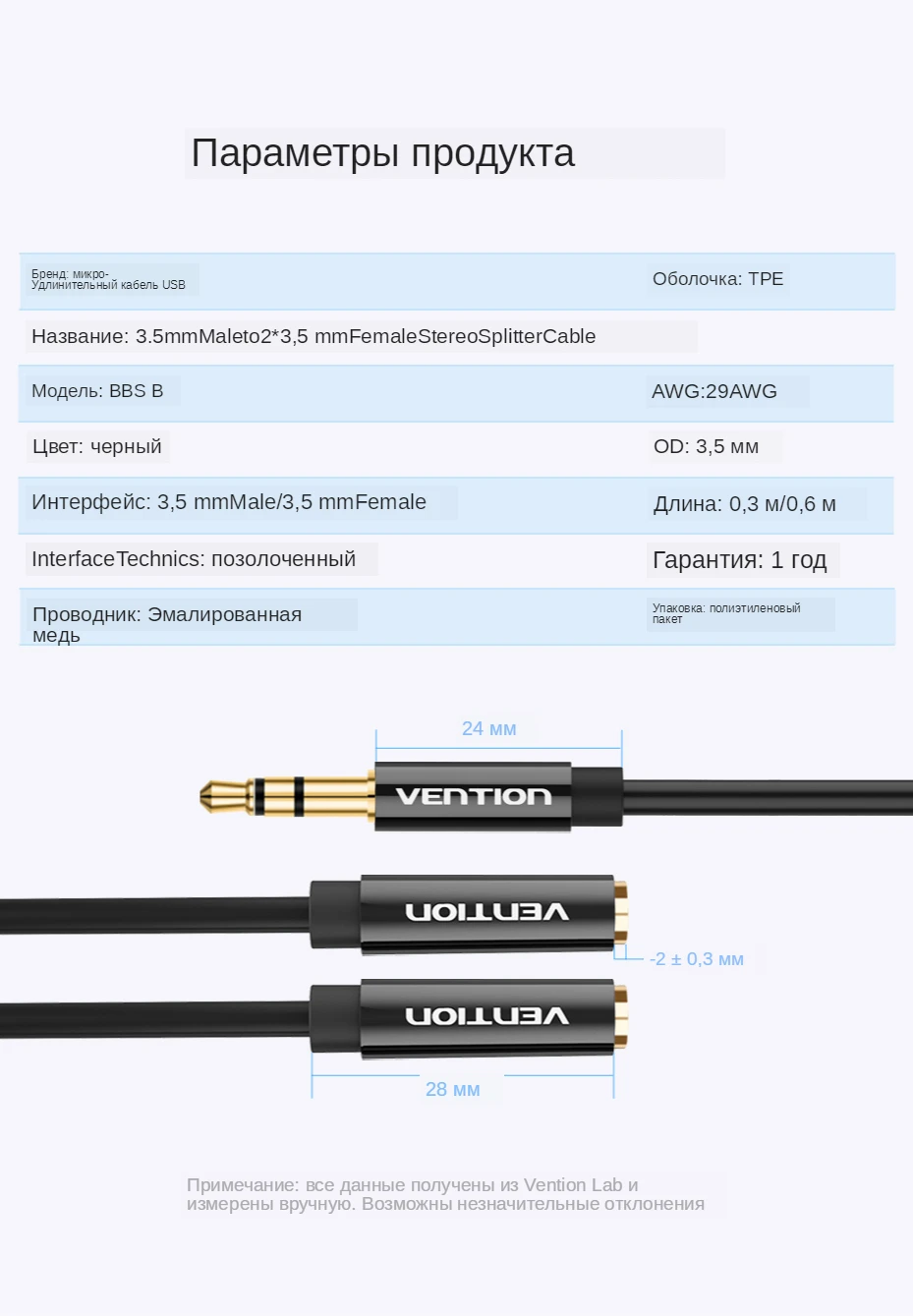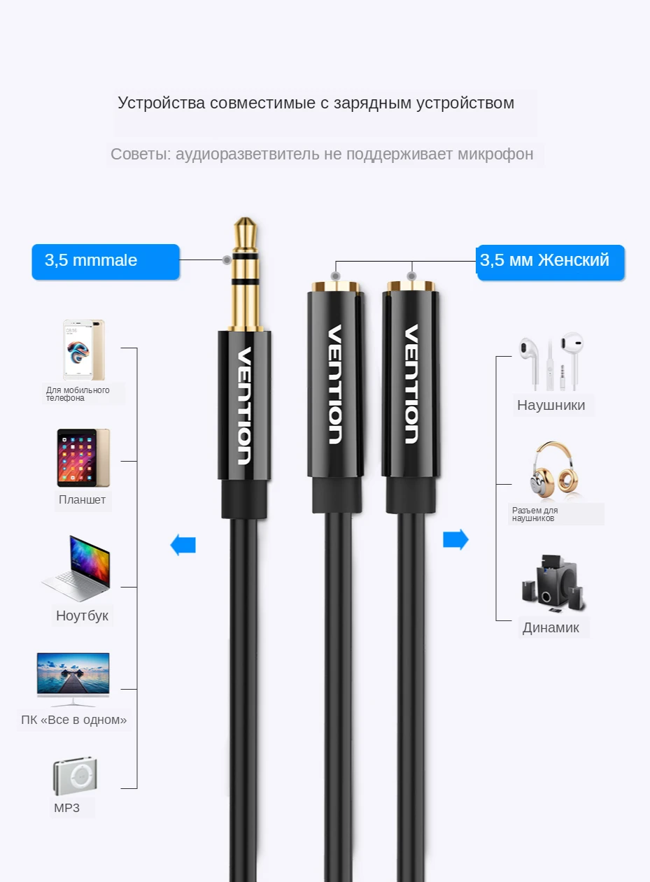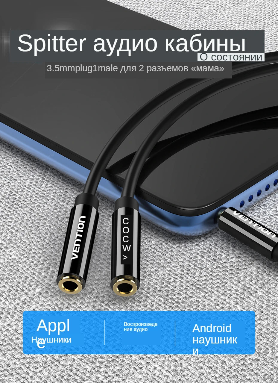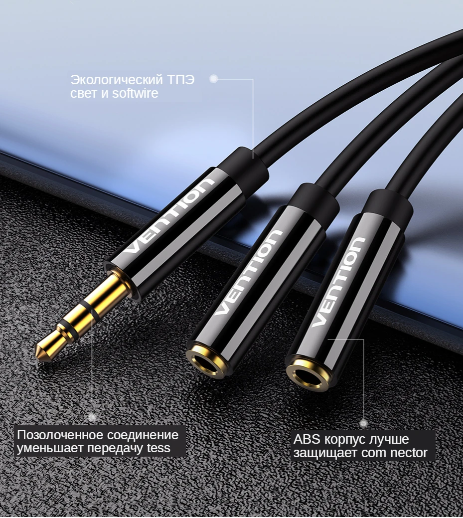 Аудиокабель-разветвитель Vention 3,5 мм штекер-2 гнезда 3,5 мм Y-образный разветвитель для микрофона Aux кабель для iPhone ноутбука MP3 Разветвитель для наушников
