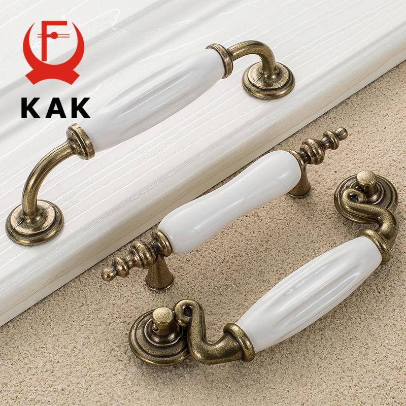 KAK античная бронза белые ручки для ящиков из цинкового сплава керамические ручки для Шкафов Простая Европейская мебельная фурнитура