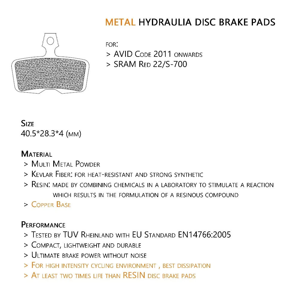 Колодки тормозные для велосипедов SRAM металлический диск + Guide -re 2011 + Sram Red 222011, 4 пары, металлические, для SRAM S-700