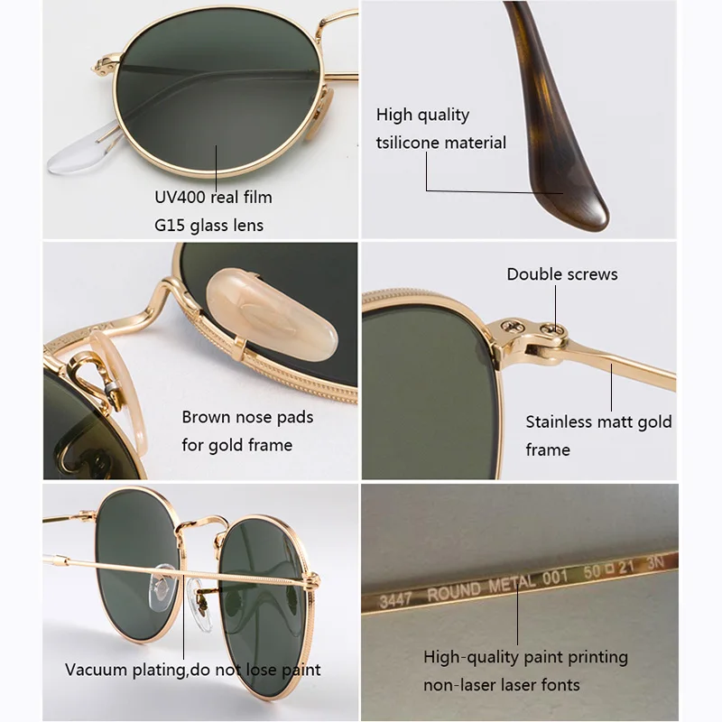 Очки солнцезащитные круглые в стиле ретро для мужчин и женщин, с настоящими линзами UV400, Роскошный дизайнерский бренд, 3447