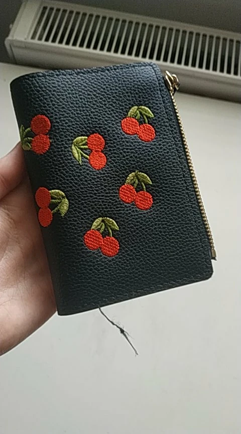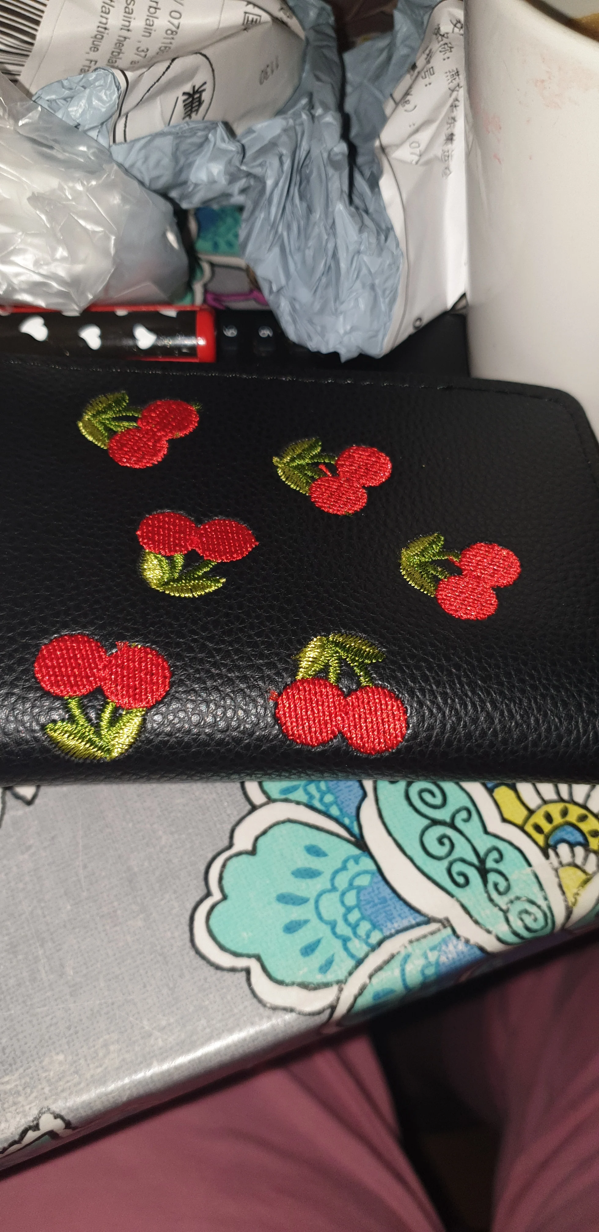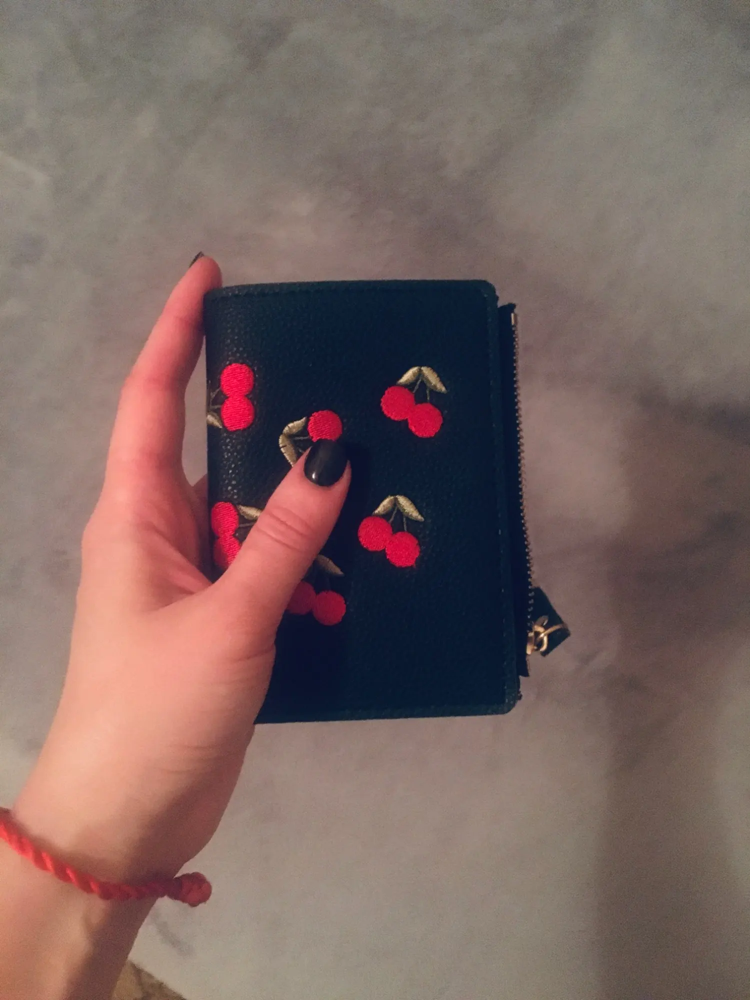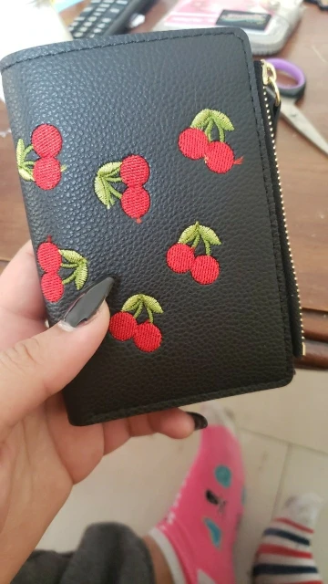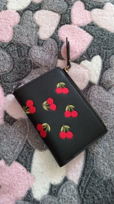 Модный женский кошелек из искусственной кожи с вышивкой вишни, держатель для карт, Женский мини-кошелек для денег, маленький короткий кошелек
