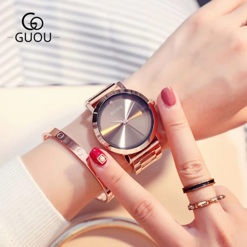 Женские часы, женские Часы GUOU 2020, модные часы с браслетом из розового золота, женские часы Стразы, женские часы, женские часы