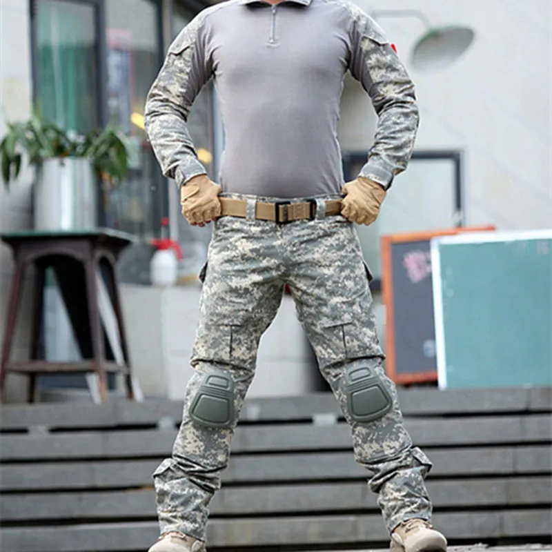 Камуфляжная Военная тактическая Униформа с налокотниками, костюмы для охоты, тренировок, кемпинга, боевых рубашек и брюк, комплекты одежды