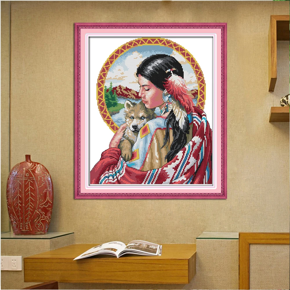 Joy Sunday индийская девушка украшение для дома R511 подсчитанный штамп красота вышивка Набор для вышивки крестиком