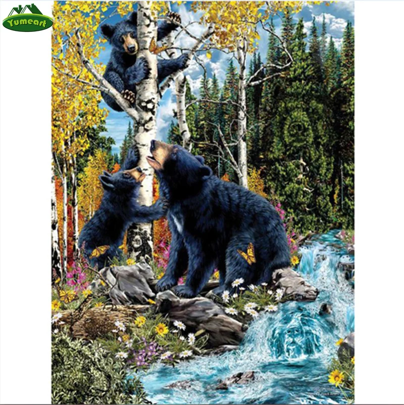 Алмазная вышивка YUMEART, алмазная живопись 5D "сделай сам", медведь, дерево, 3d, вышивка крестиком, Алмазная мозаика, мазайка, рукоделие, домашний декор